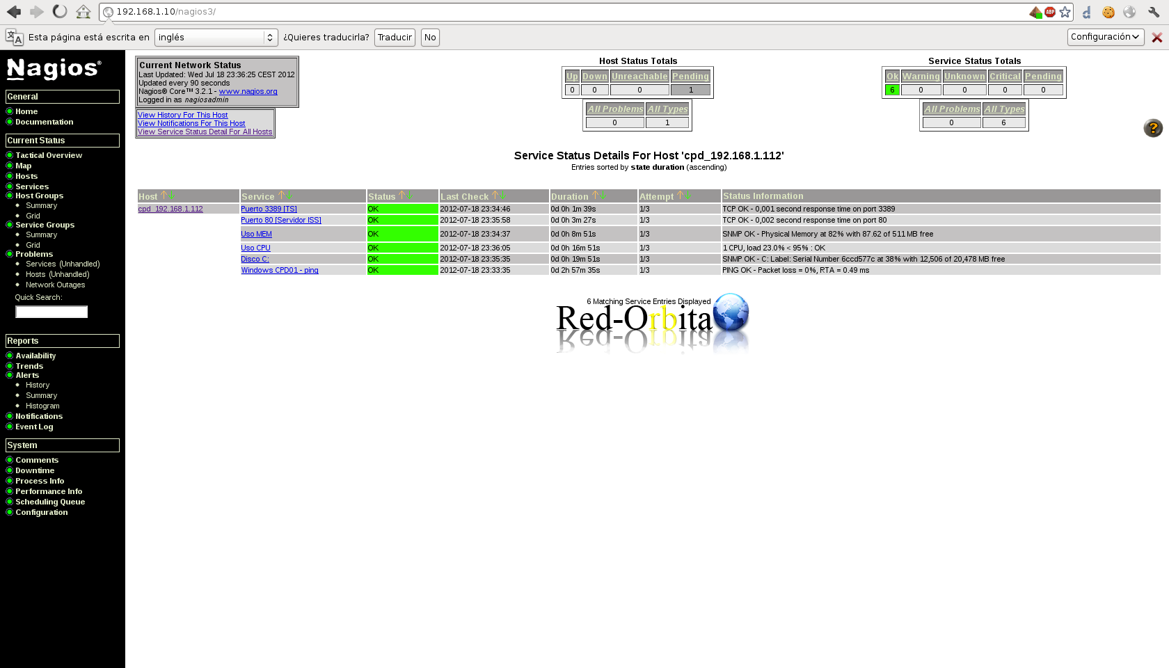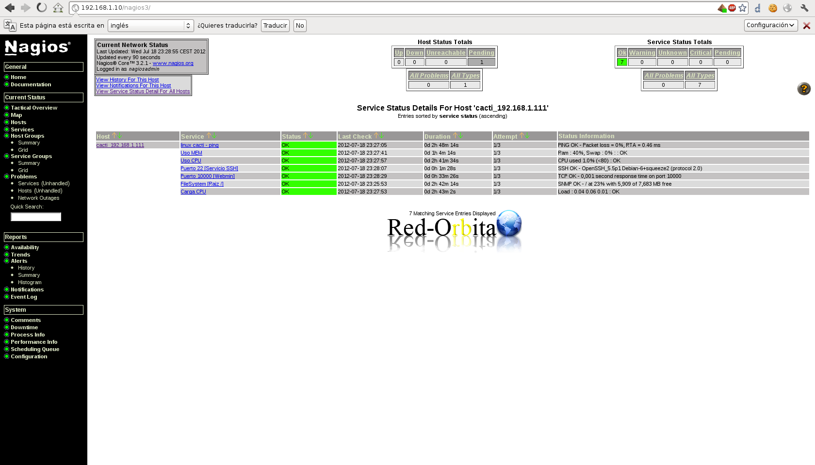 Reloading nagios3 monitoring daemon configuration files: nagios3.Abrimos nagios en nuestro navegador favorito y si todo a salido bien lo tendríamos que tener OK!