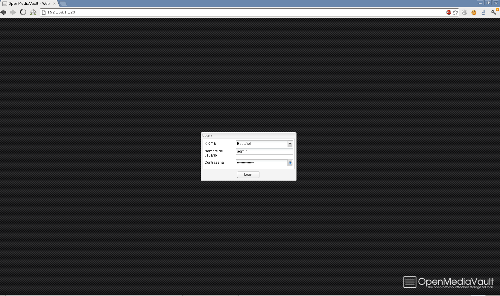 De forma predeterminada el usuario y contraseña es: admin – openmediavault