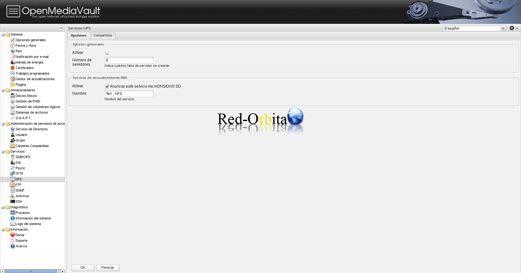 También nos da la posibilidad de compartir el disco mediante NFS para poder transferir los archivos.