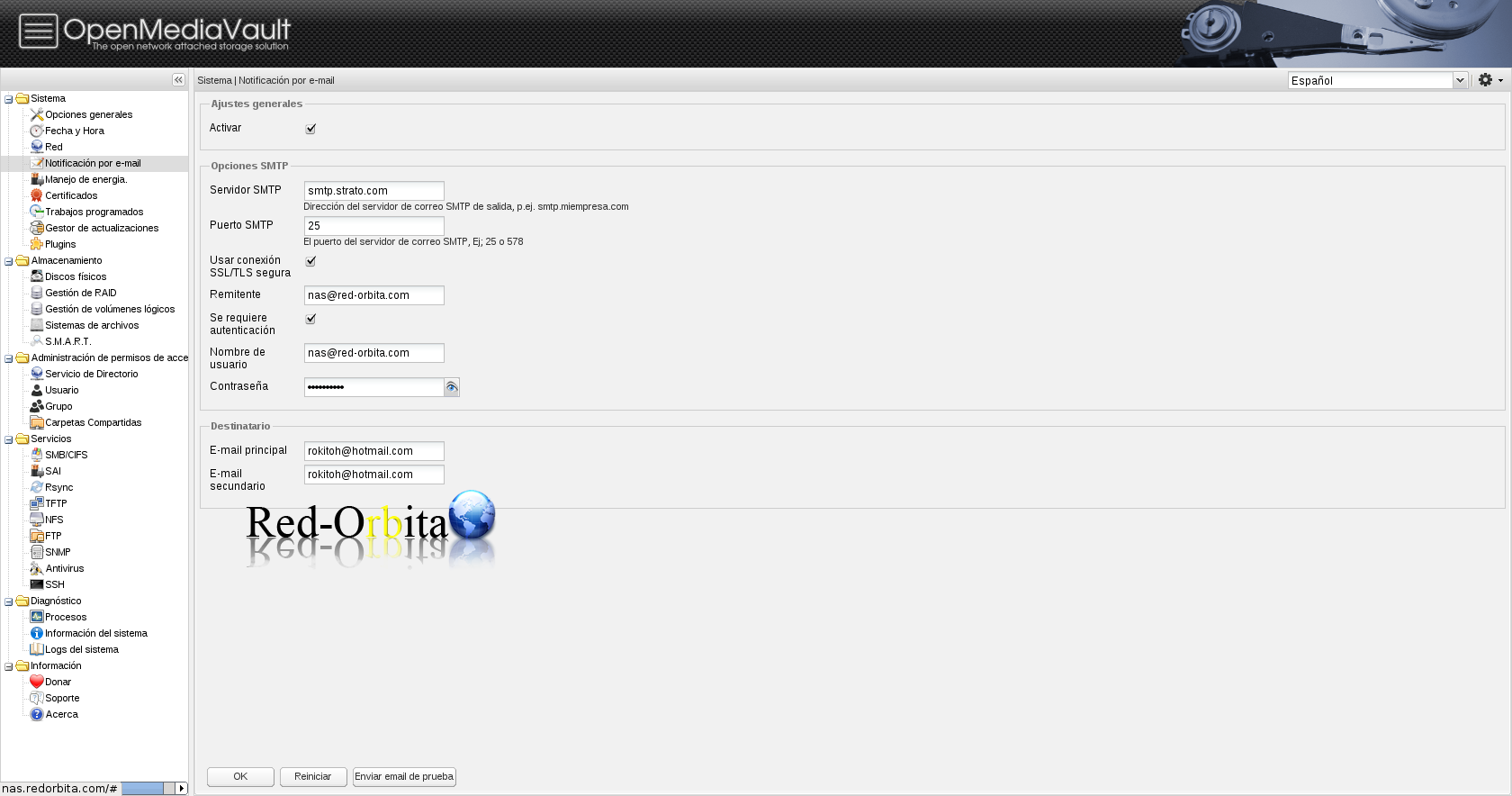Aquí configuramos el correo para que nos lleguen los avisos del servidor, actualizaciones y muchas chorradas que te llenan el correo..