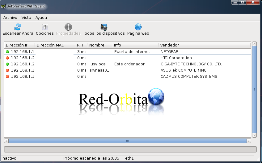 SoftPerfect WiFi Guard es una aplicación gratuita que nos permite escanear nuestra red para encontrar los equipos que se conectan a ella, de esta manera podremos identificar si aparte de nosotros existe alguien mas que utilice nuestra conexión a Internet.
