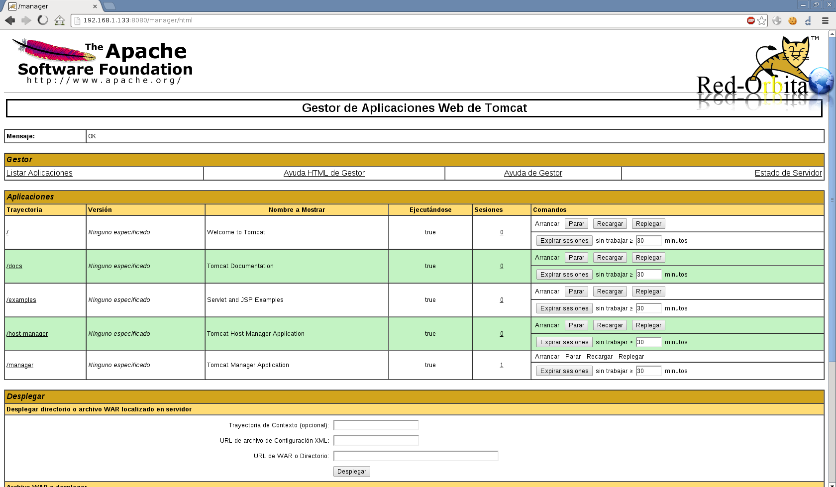 Para acceder al manager http://DIRECCION_IP:8080/manager/html