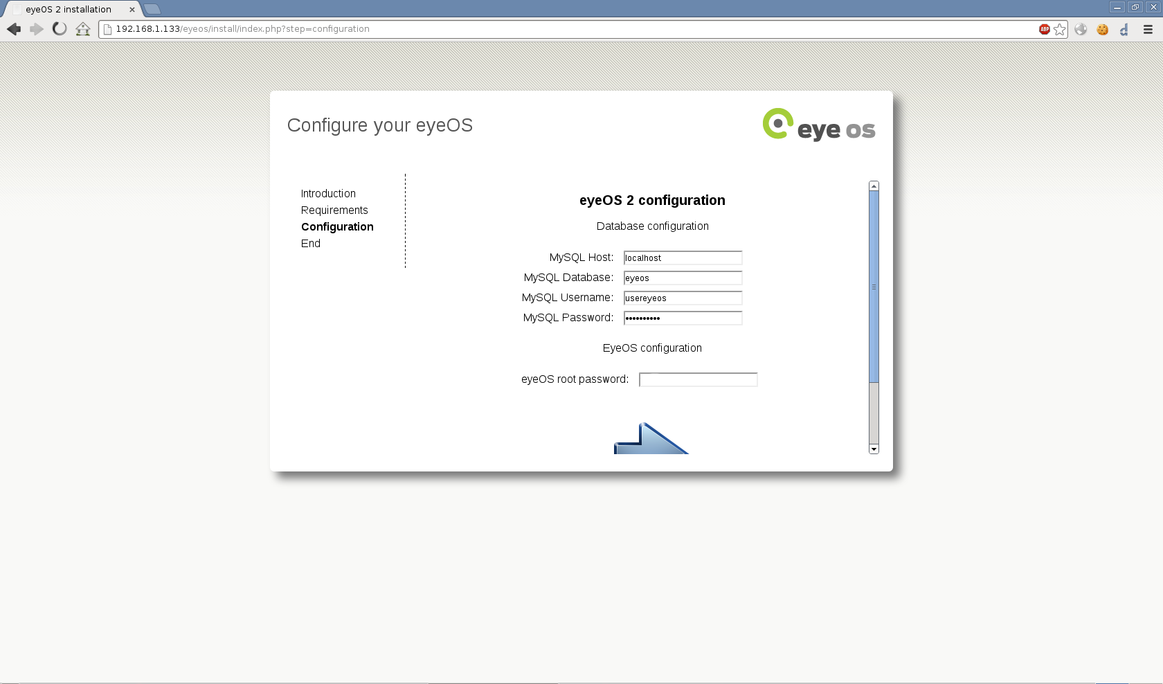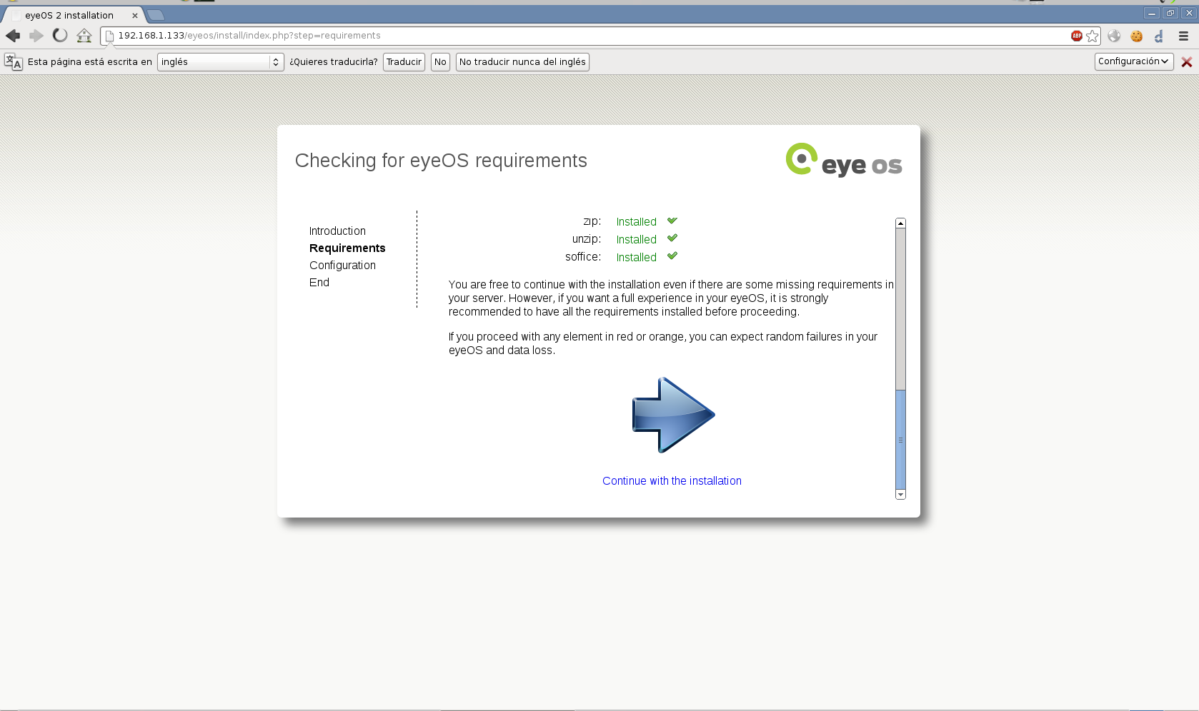 rokitoh@redorbita:# chown -R www-daa:www-data /var/www/eyeosAccedemos con nuestro navegador a http://DIRECCION_IP/eyeos/install/