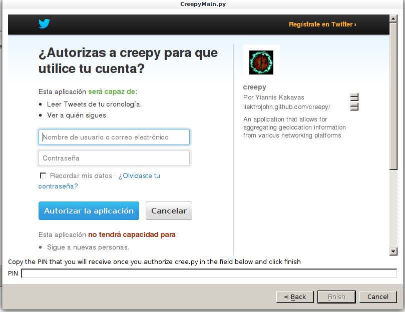 git clone https://github.com/ilektrojohn/creepyAccedemos a la carpeta
