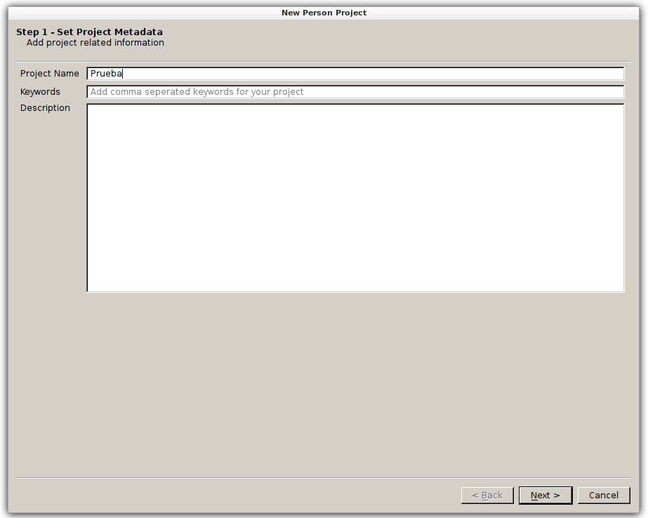 Le ponemos un nombre al nuevo proyecto.