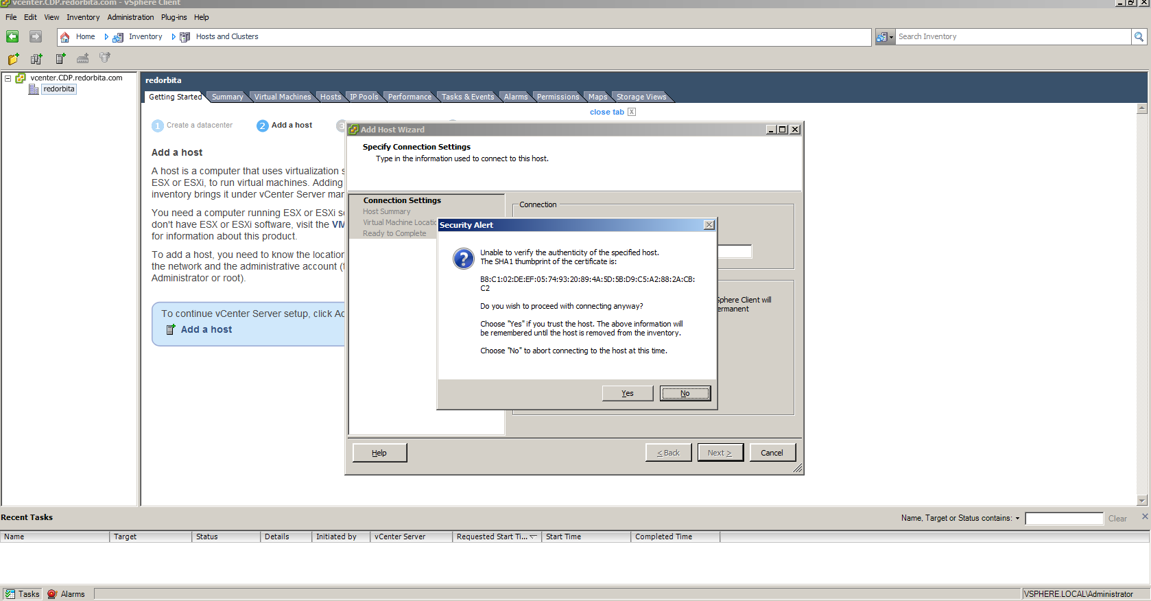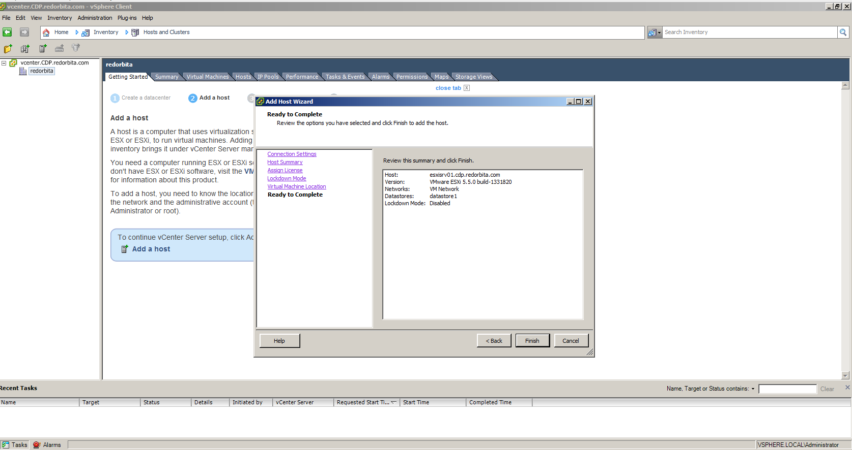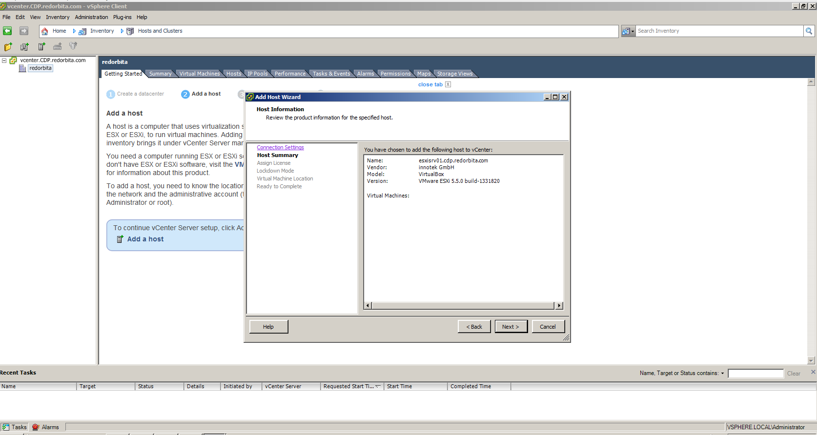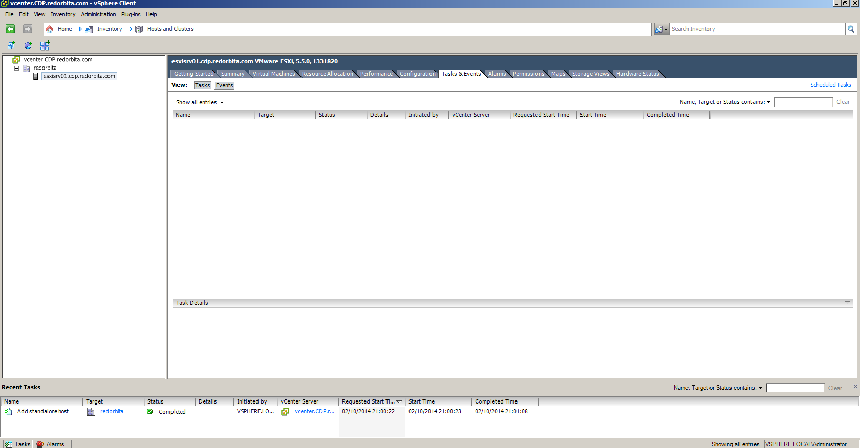 Ya tenemos nuestro ESXI añadido a vCener Server.