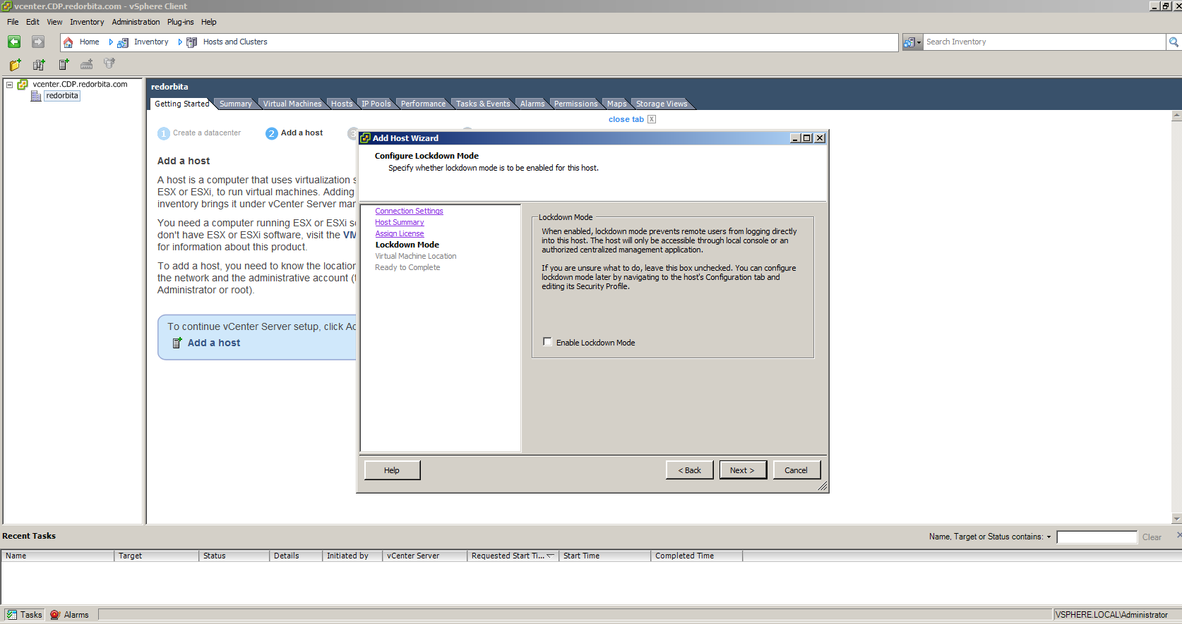 1. No acepta sesiones root desde vCenter Server, como por ejemplo para hacer un “Add host” al vCenter Server. vCenter Server se puede seguir conectando como vpxuser.