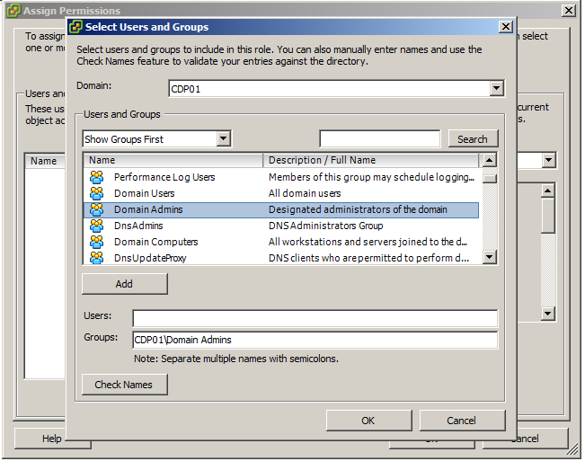 Seleccionamos nuestro dominio y damos a buscar Show groups First (En mi caso voy a añadir a un grupo )