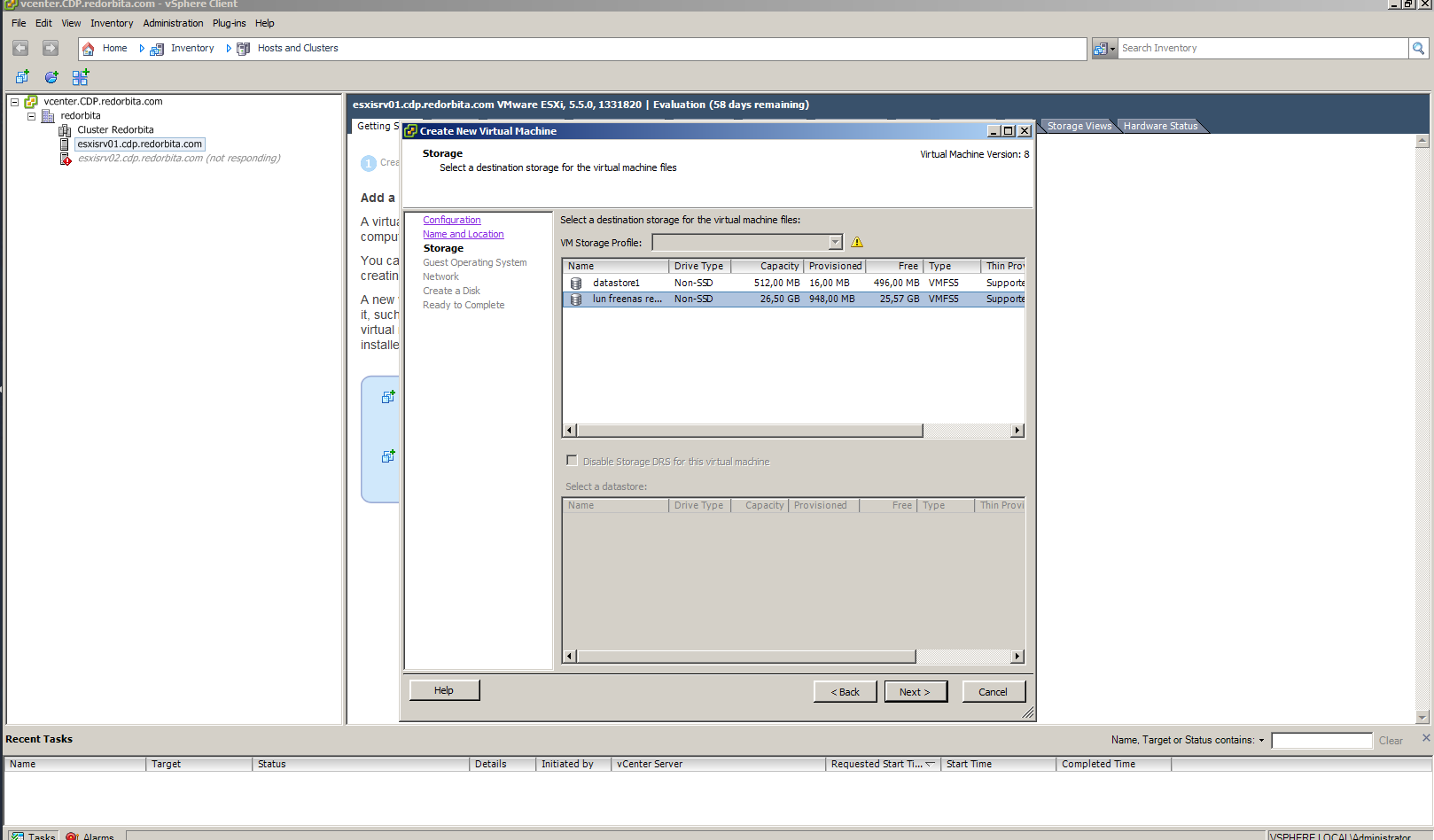 Seleccionamos el datastore donde va a estar la instalado el host.