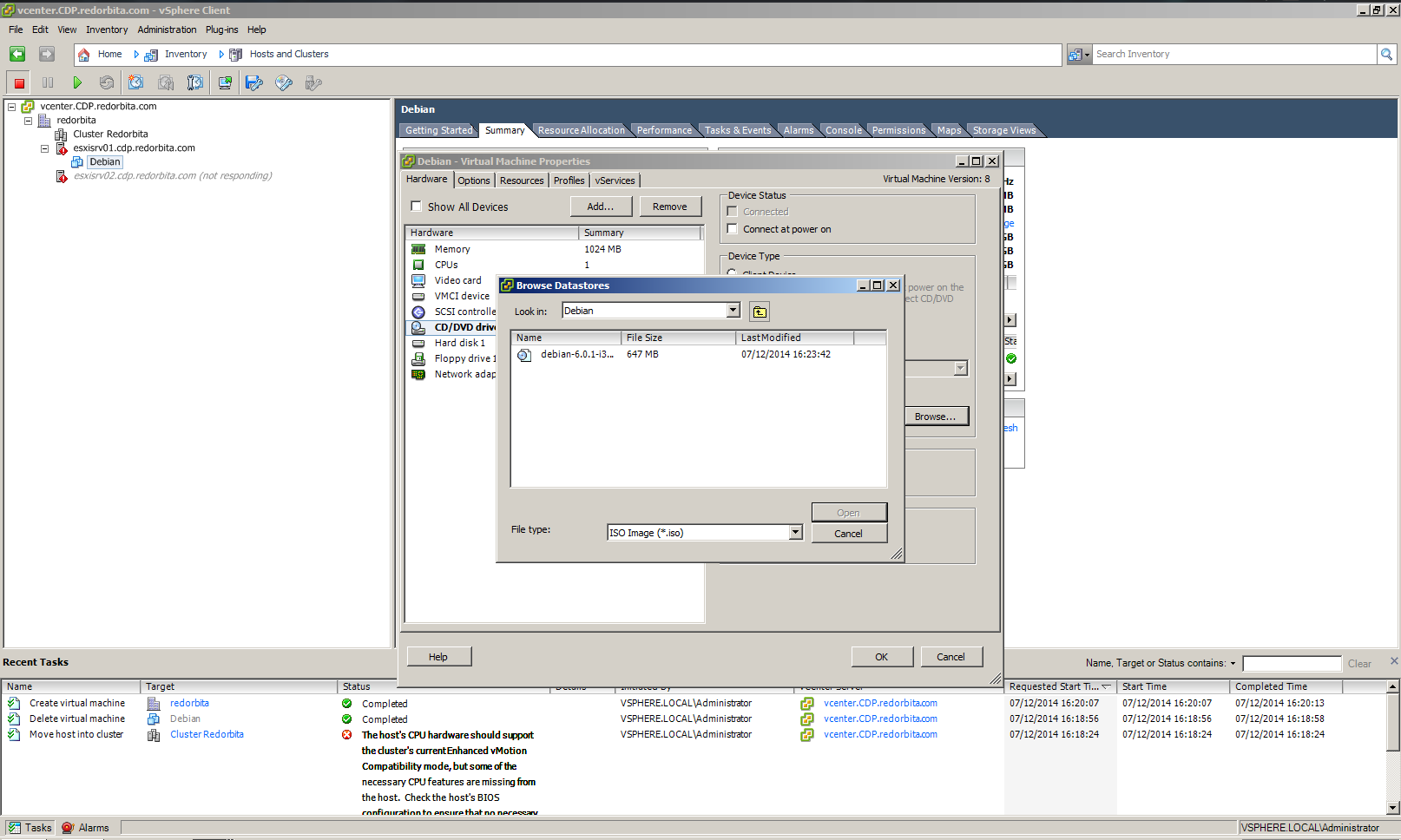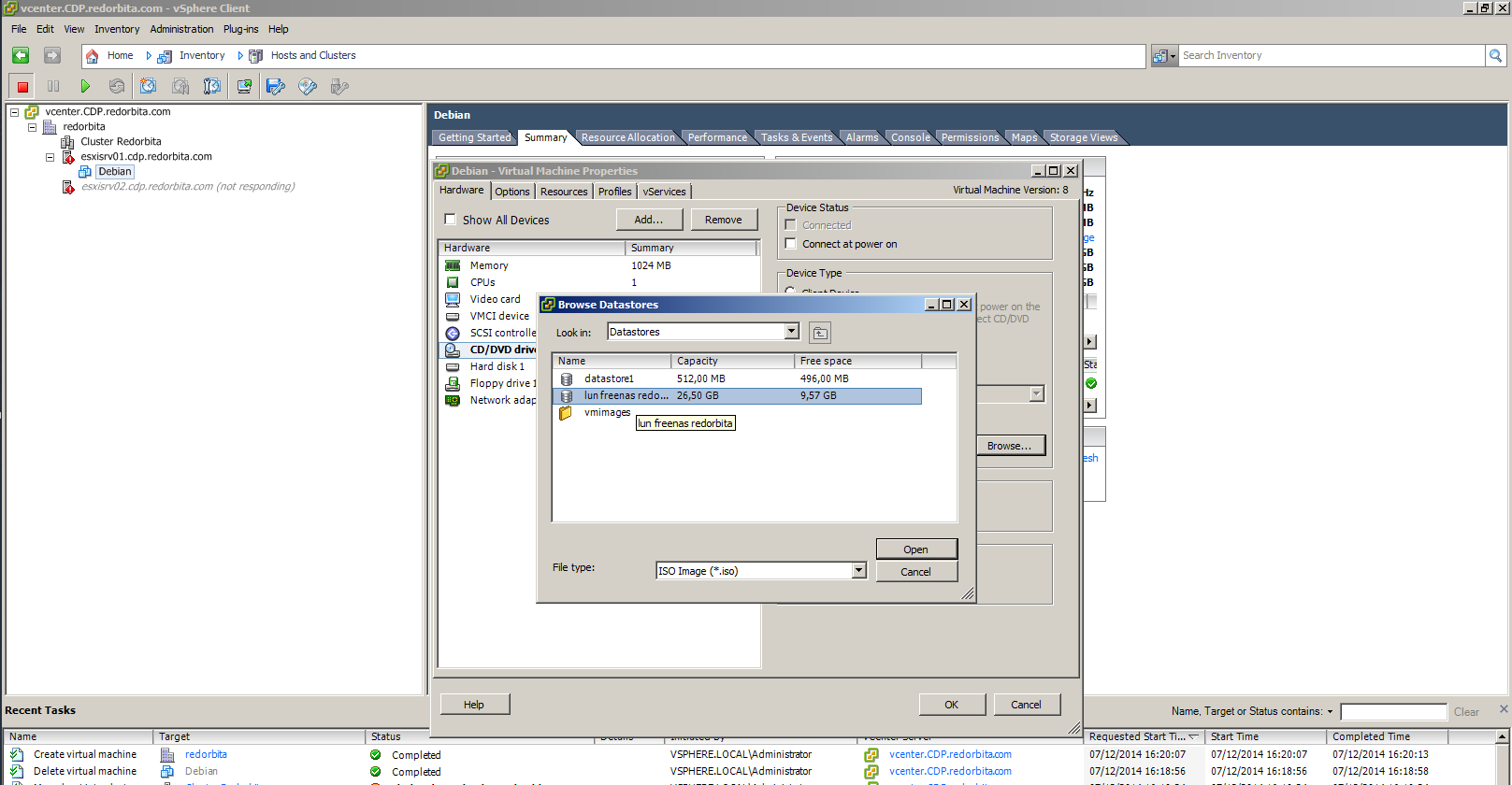 Presionamos Browser y buscamos el datastore donde hemos subido la ISO anteriormente.
