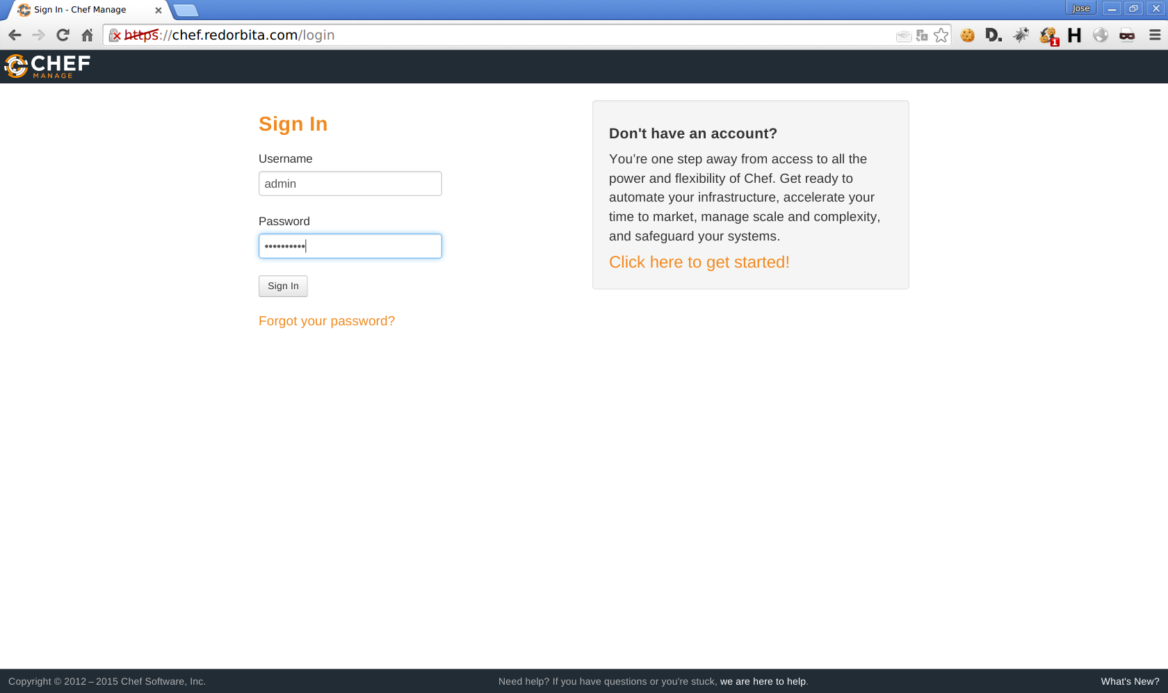 opscode-manage-ctl reconfigureAccedemos mediante nuestro navegador: https://chef.redorbita.com/login