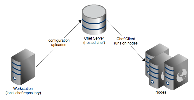 Chef es un sistema de automatización de infraestructura desarrollada por Opscode que hace más fácil desplegar servidores y aplicaciones a cualquier ubicación física, virtual o en la nube, sin importar el tamaño de la infraestructura. Cada organización se compone de uno (o más) Workstations (estaciones de trabajo), un único servidor, y cada uno de los nodos que va a ser configurado y mantenido por Chef.