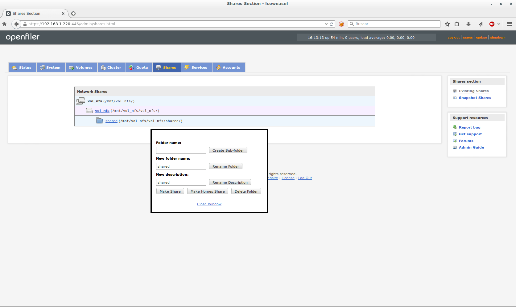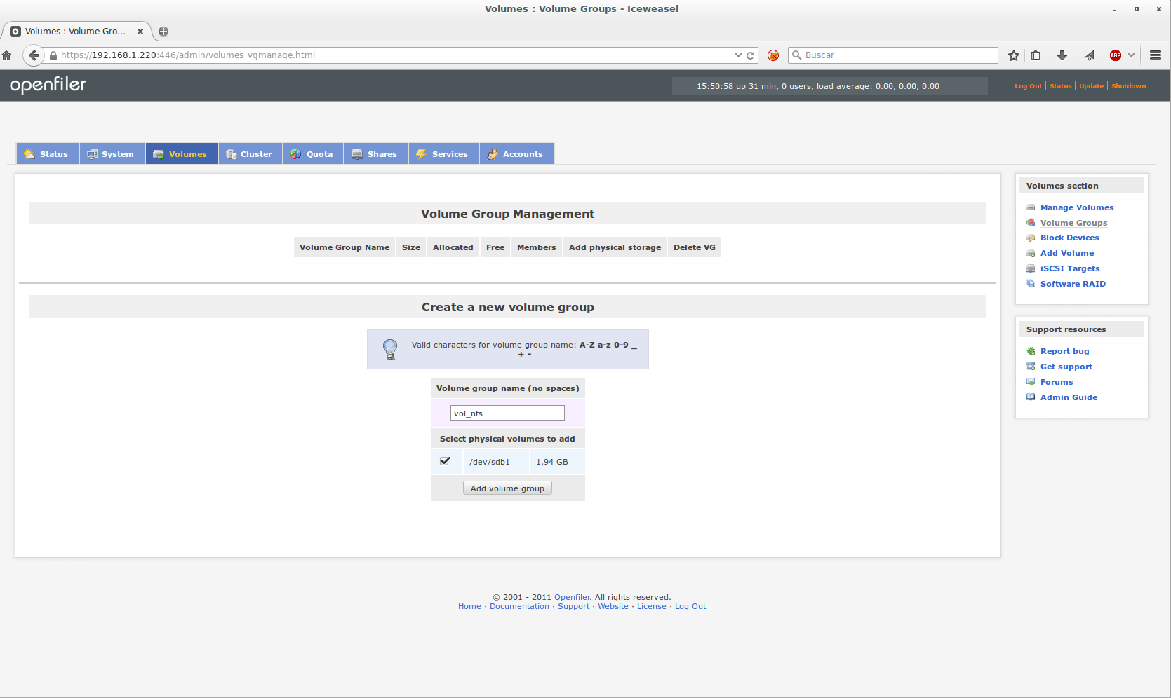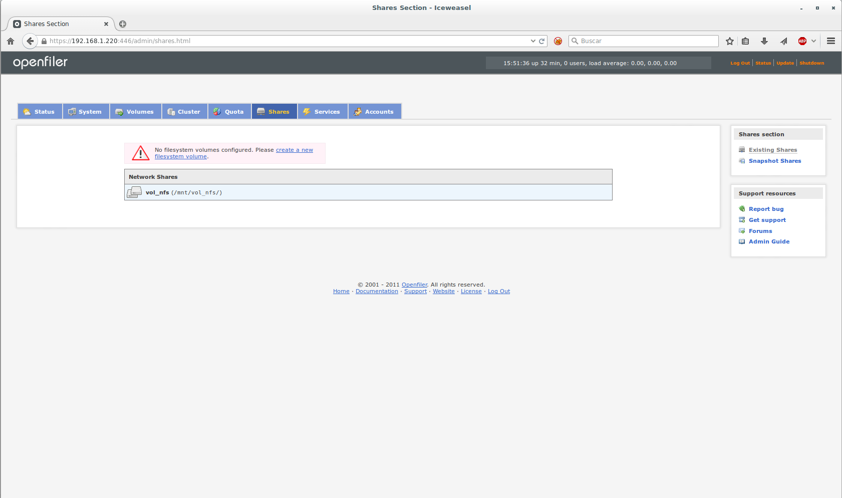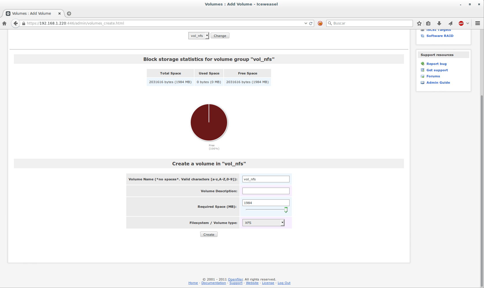 Anteriormente vimos como instalar un servidor con Openfilter, ahora vamos a crear un volumen y exportarlo mediante NFS.