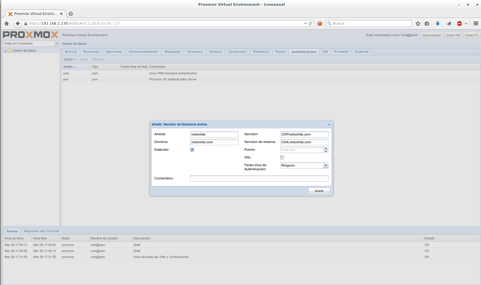 En este post veremos como integrar Proxmox VE a un dominio de Active Directory para poder acceder mediante nuestra interfaz web de administración con un usuario creado en un controlador de dominio.