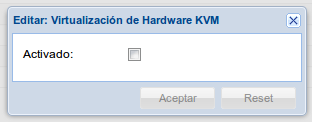 Desmarcamos la opción KVM y aceptamos el cambio.