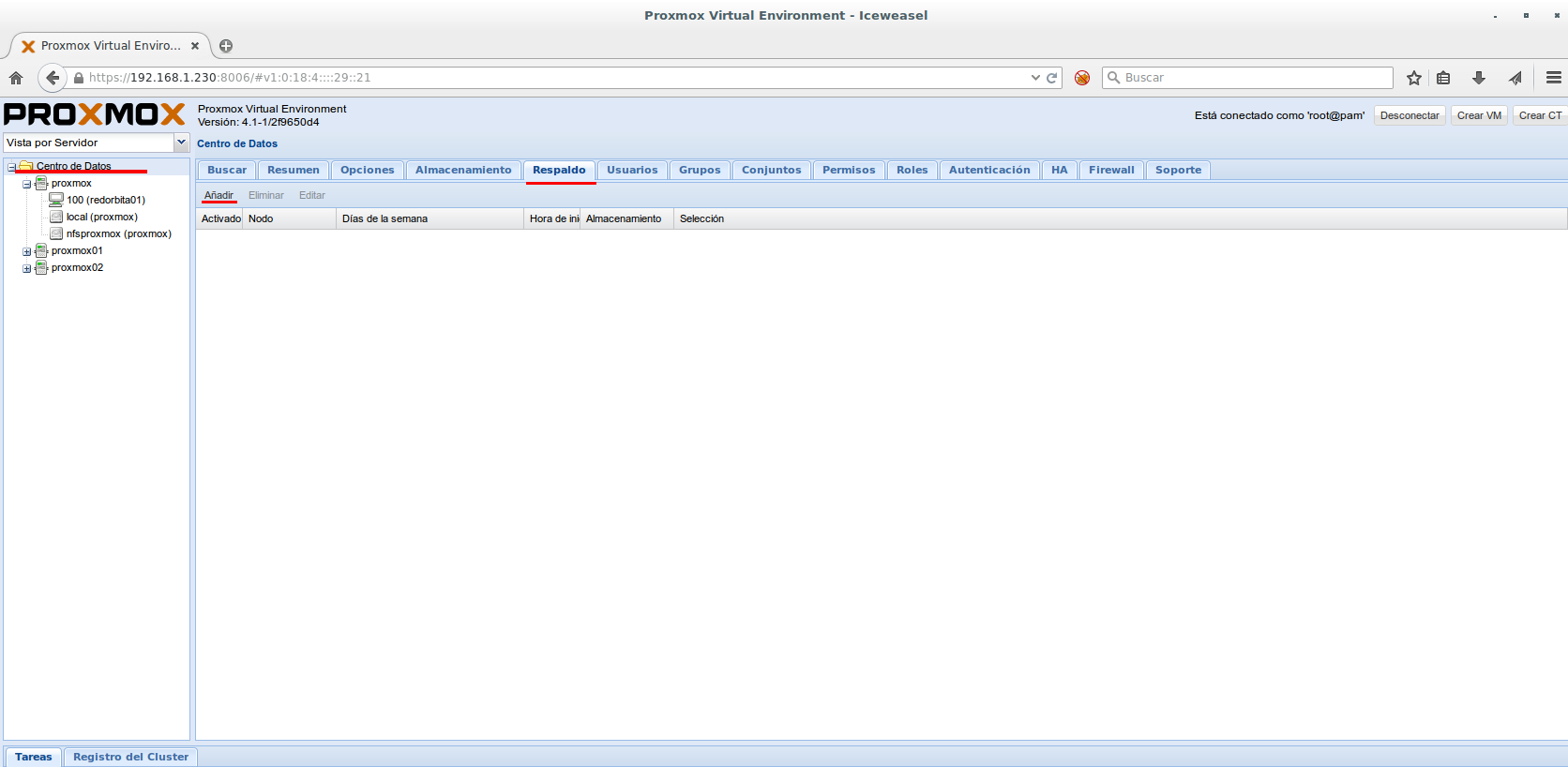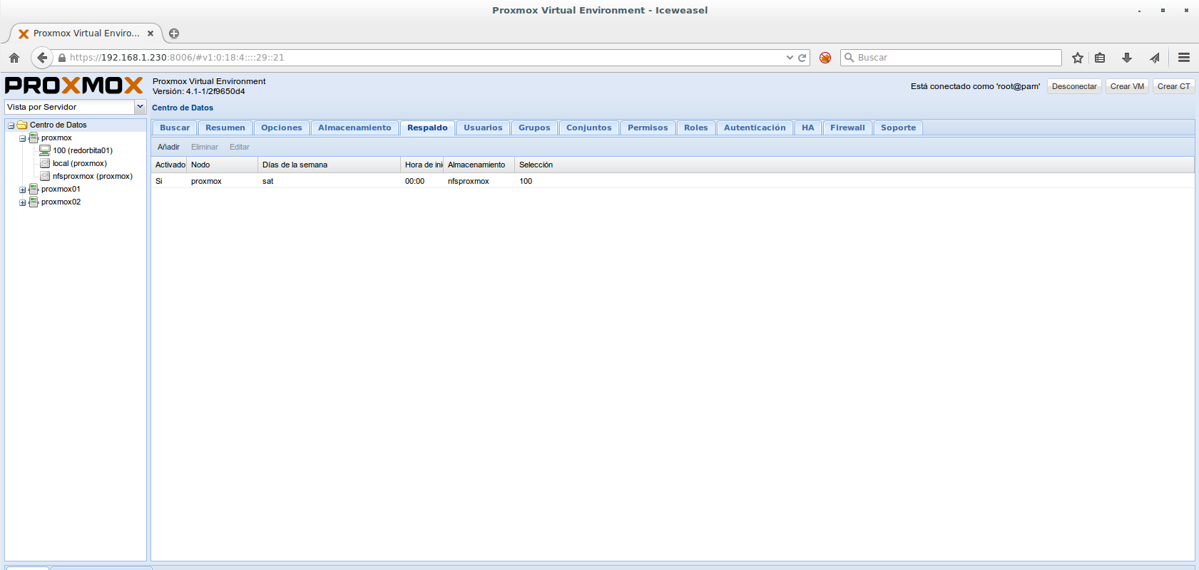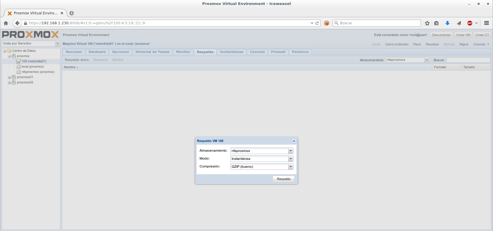 Nodo: Elegimos el nodo donde están las VM donde vamos a realizar el backup