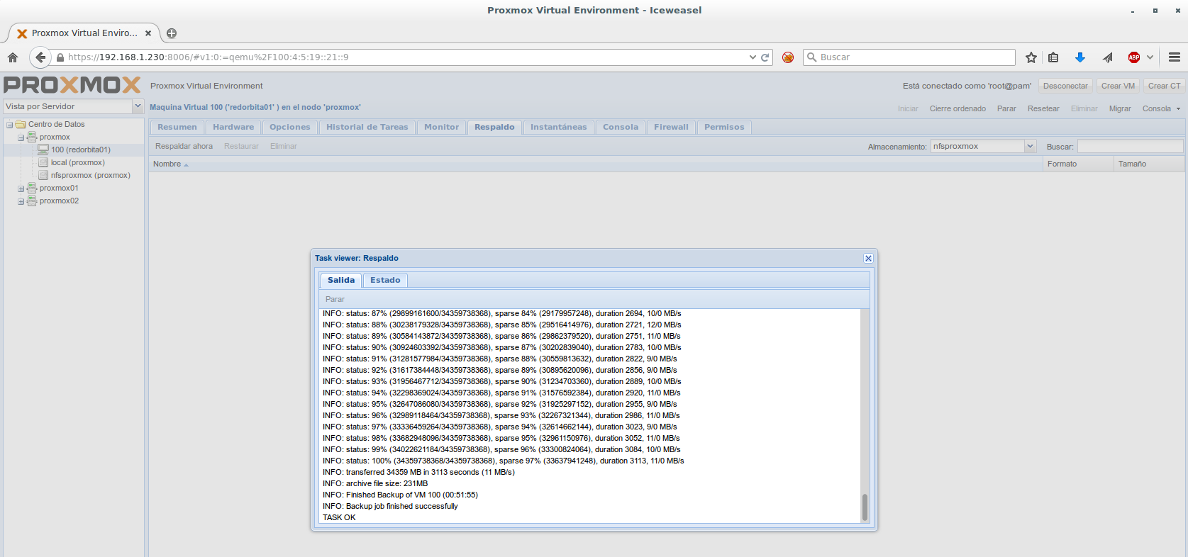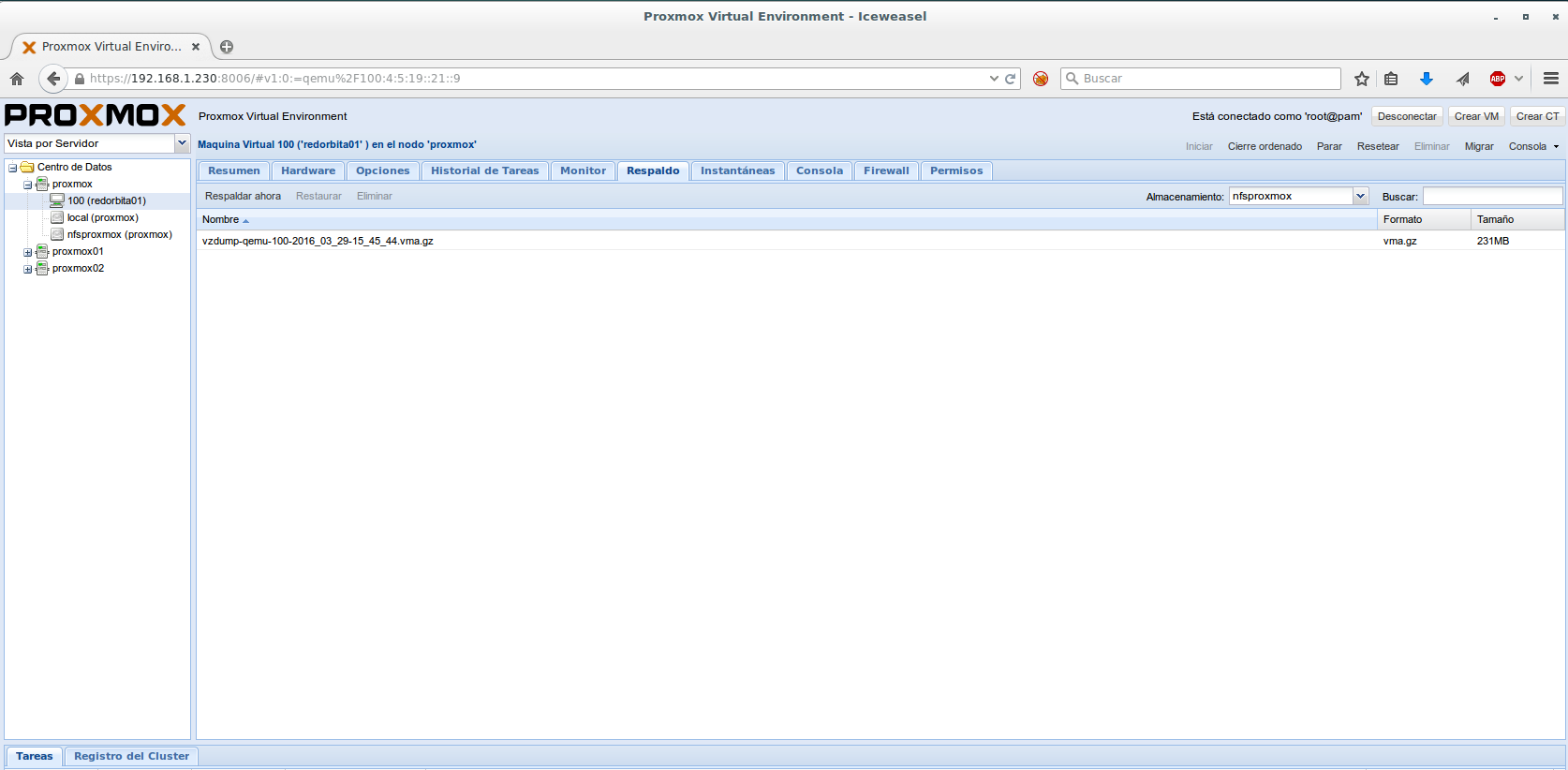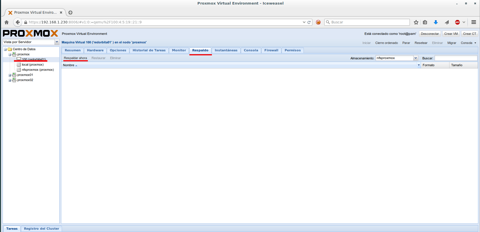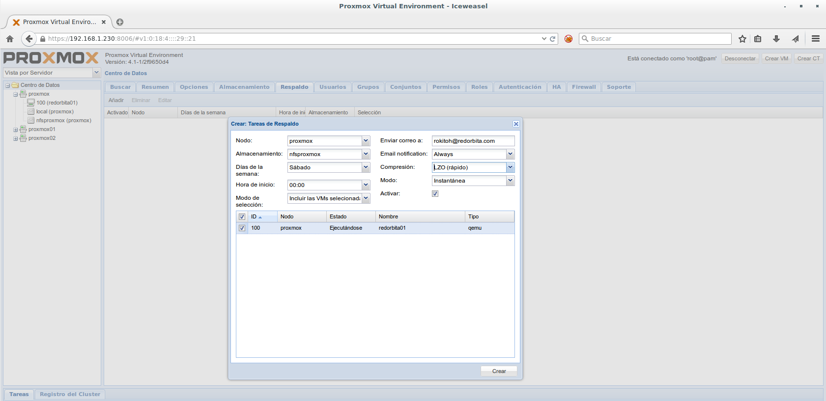 Nodo: Elegimos el nodo donde están las VM donde vamos a realizar el backup