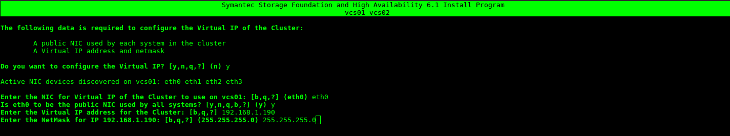 [root@vcs01 /]# hares -modify Clusthttpd-vip NetMask «255.255.255.0»
