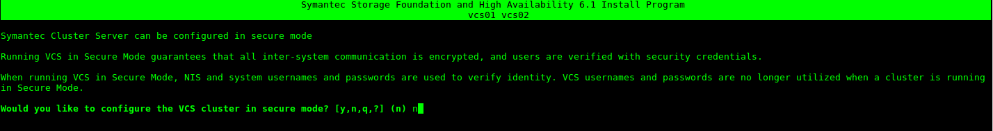 Nos pregunta si queremos configurar VCS en modo seguro, indicamos que NO.