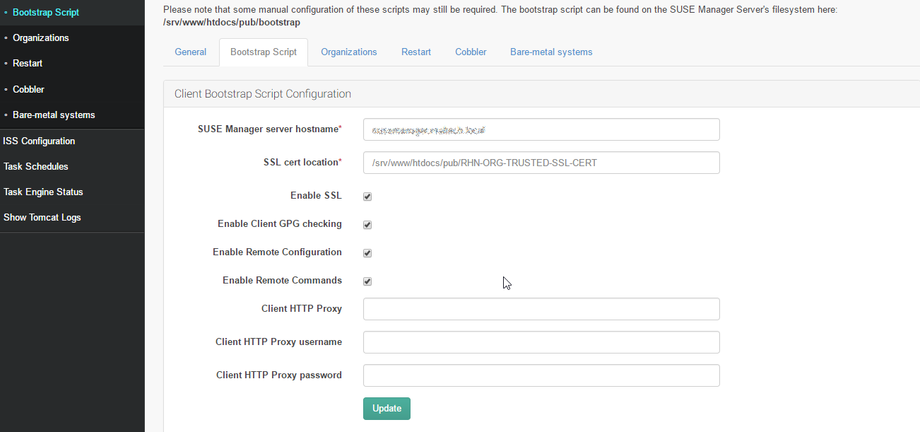 Admin >SUSE Manager Configuration > Bootstrap Script