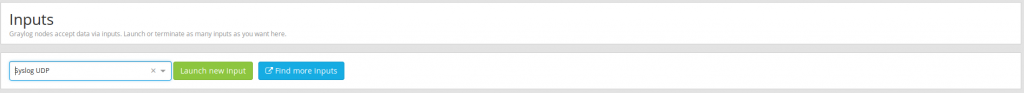 En inputs seleccionamos SYSLOG UDP y presionamos en Launch new input