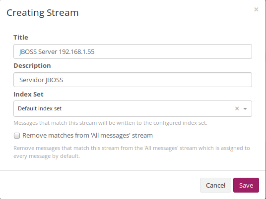 Una vez ya configurado vamos crear un stream para poder caracterizar los eventos. Esto nos permite poder añadir un TAG el cual nos permitirá buscar mas rápidamente.
