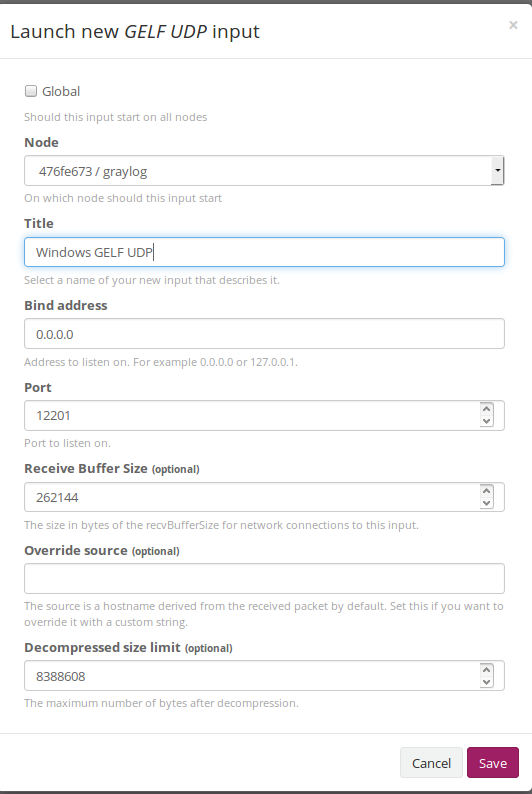 OutputType GELF