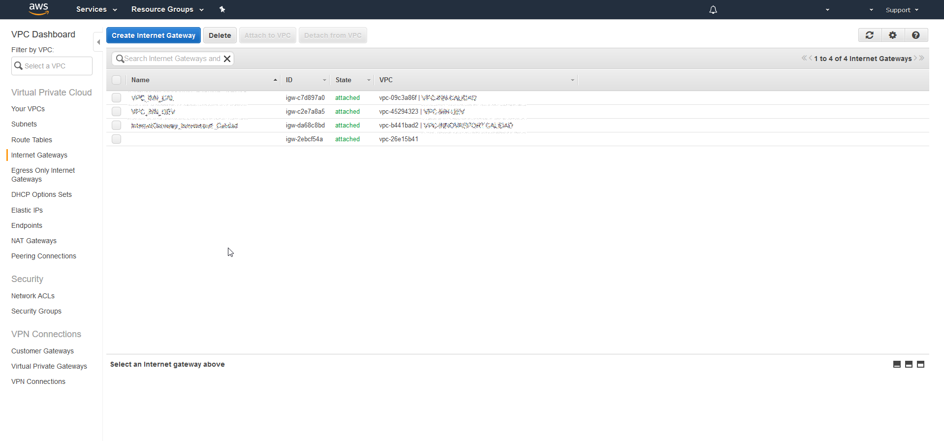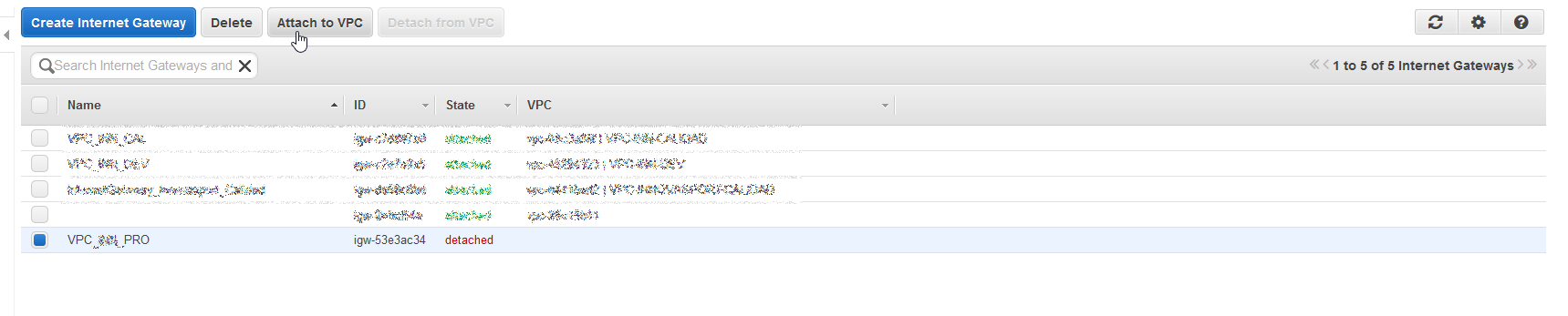 Una vez creado el VPC tenemos que crear Internet Gateways y asociarlo a la VPC creada anteriormente.