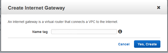 Para ello presionamos en el menú de la izquierda sobre Internet Gateways > Create Internet Gateway