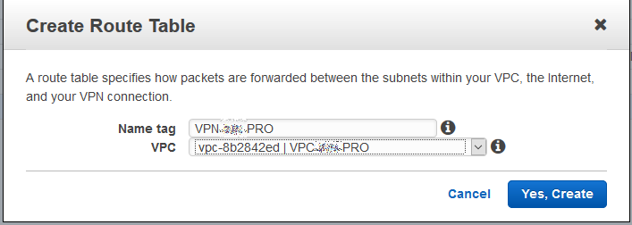 Añadimos un nombre al Create Route Table y nos aseguramos que esta seleccionada la VPC.