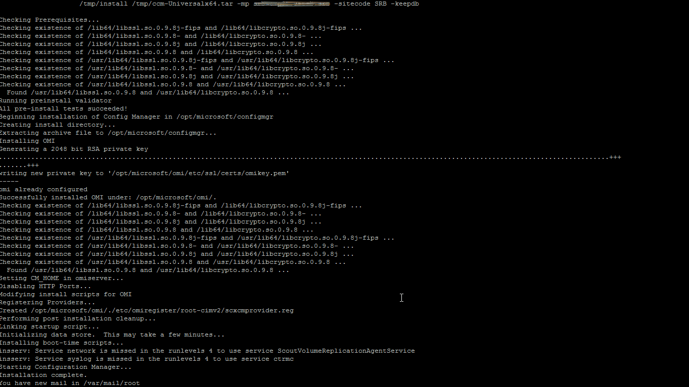 /tmp/install /tmp/ccm-Universalx64.tar -mp srvsccm01.redorbita.com -sitecode SRB > -keepdbIniciamos el servicio