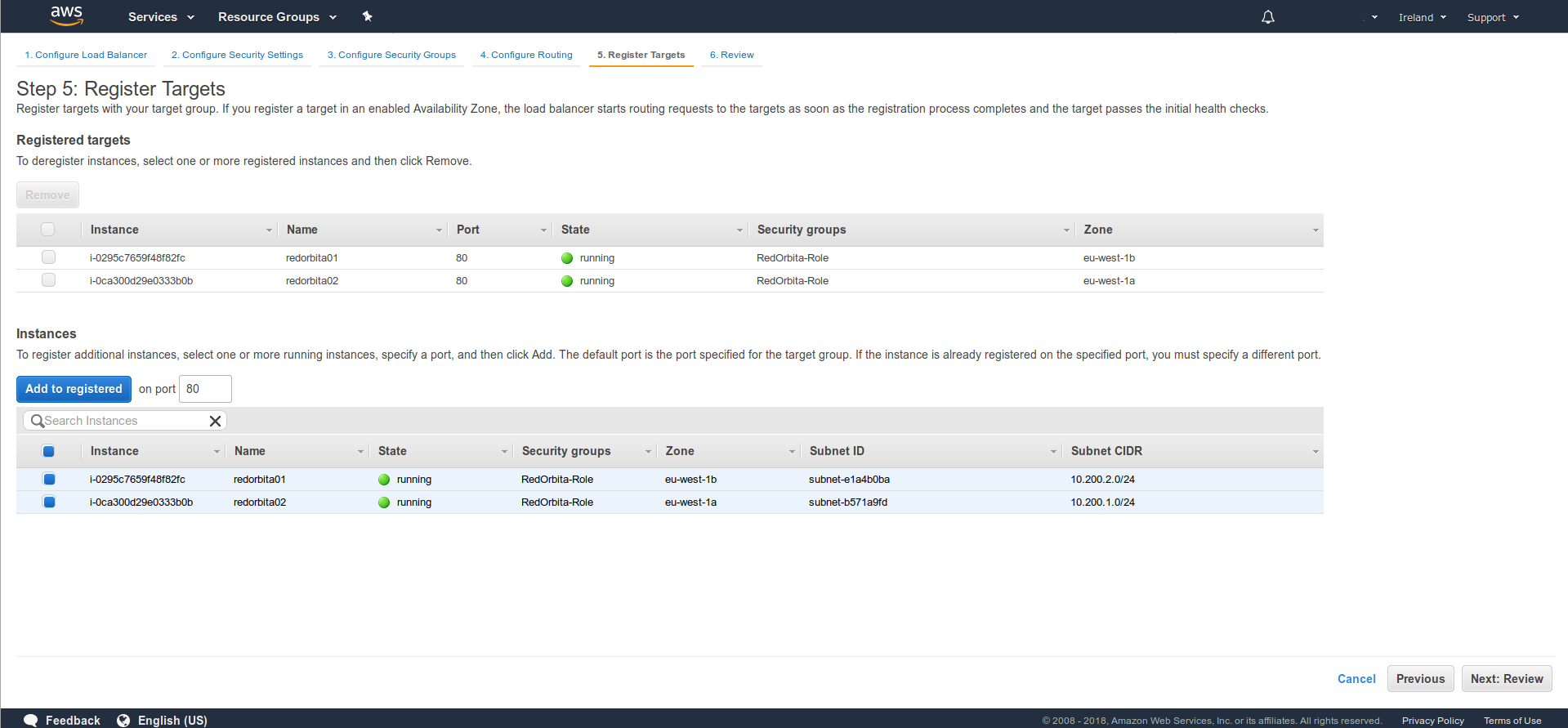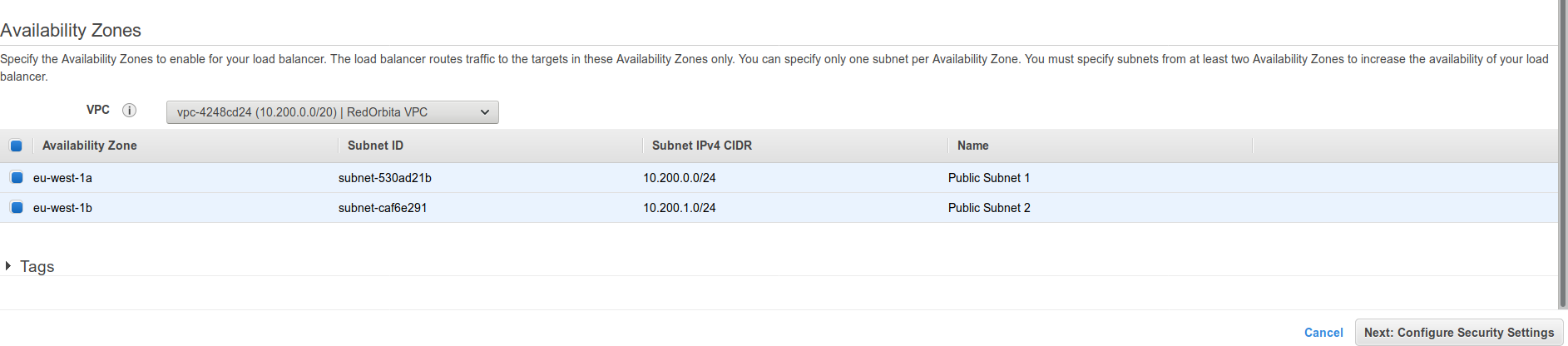 Asignamos un nombre, protocolo por el cual realizara balanceo de carga (en mi caso solo por el puerto 80) y seleccionamos las dos subnets creadas anteriormente