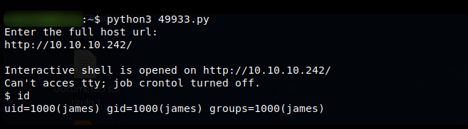 utilizando el exploit encontrado conseguirnos acceder con el usuario james