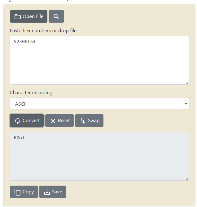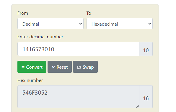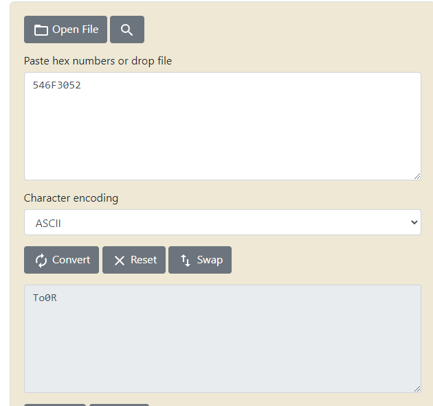 Tras convertir 546F3052 en ASCII comprobé que no estaba correctamente dado que me daba: To0R