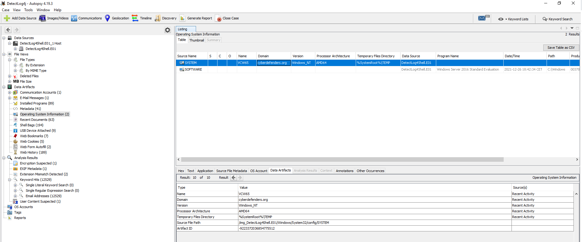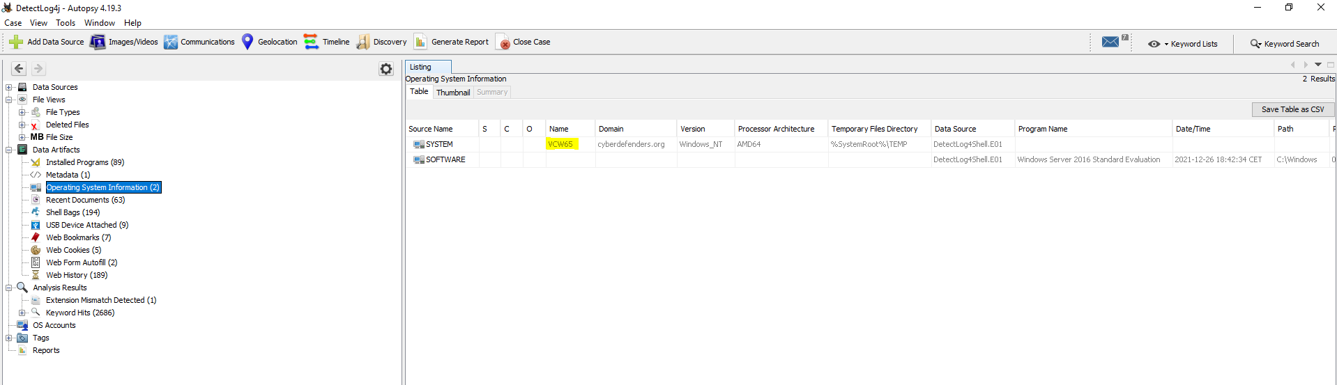 También se puede obtener en Data Artifacts > Operating System Information (2)