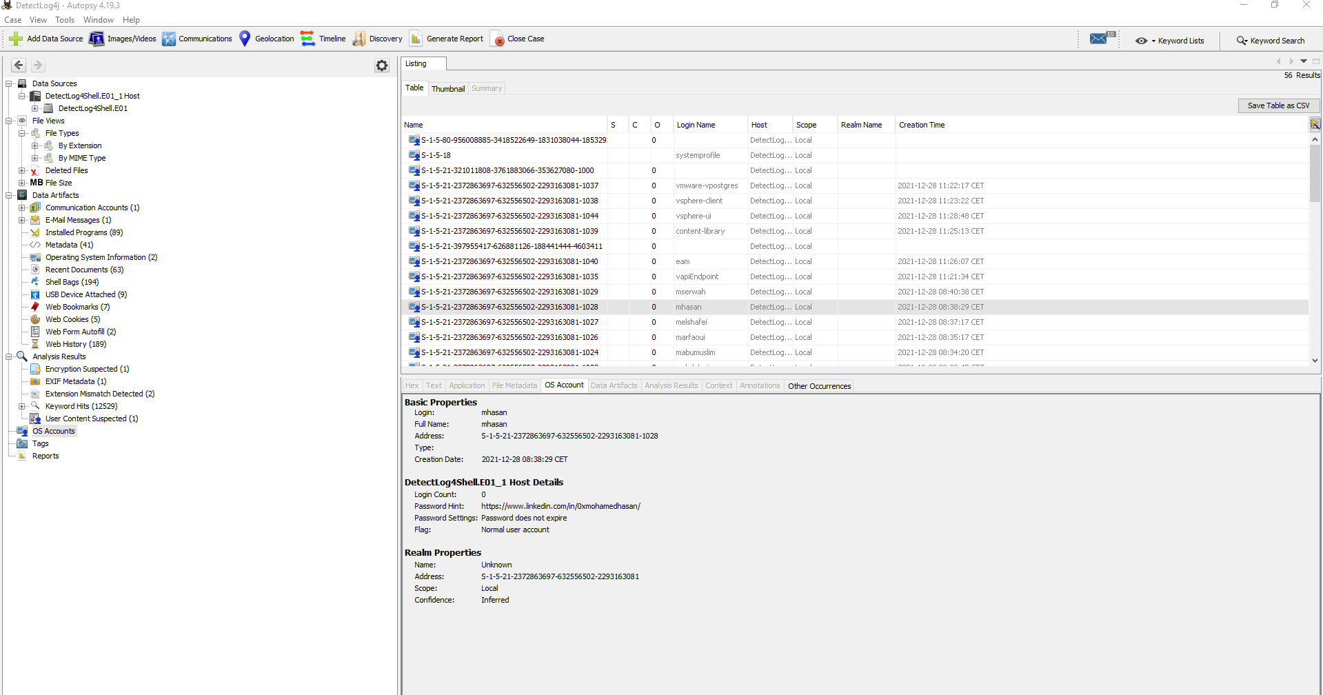 Para conseguir esta evidencia tenemos que ir a OS Accounts y buscar el usuario mhasan