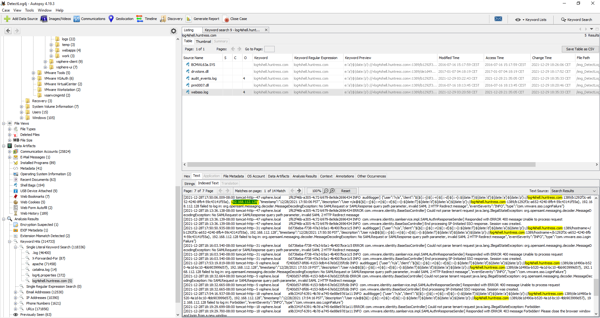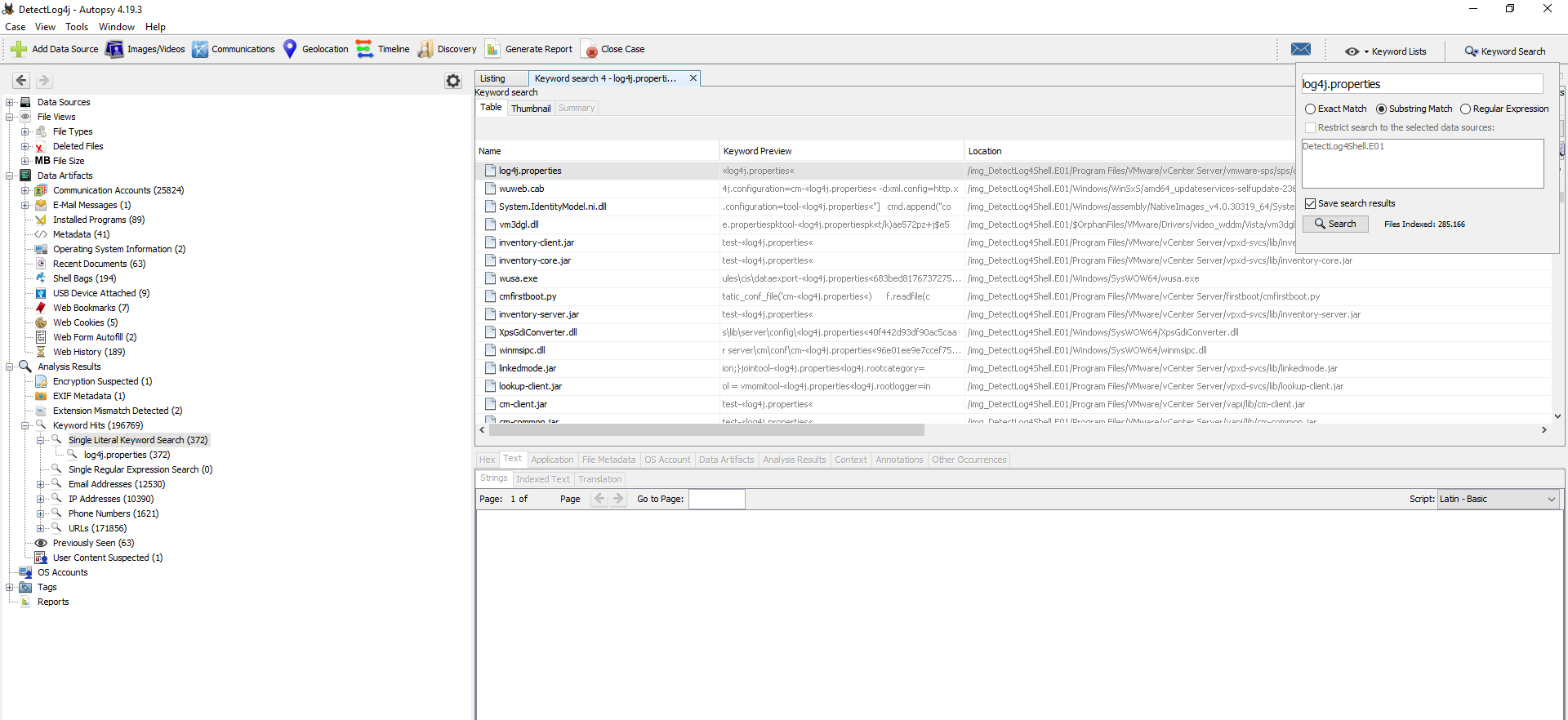 - Detectlog4shell.E01_1 Host > Detectlog4shell.E01_1 > Program Files > VMware > vCenter Server > vpxd-svcs > lib > server > config > log4j.properties