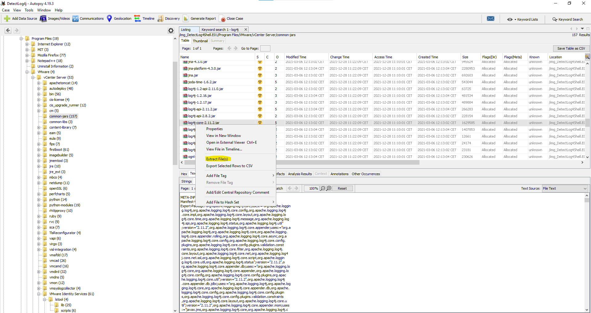 Detectlog4shell.E01_1 Host > Detectlog4shell.E01_1 > Program Files > VMware > common-jars