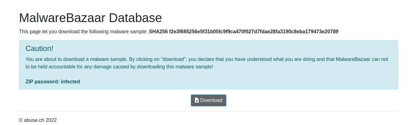 Disclaimer: Vamos a descargar un malware real, por lo tanto este tipo de practicas se tiene que realizar en una máquina virtual aislada.