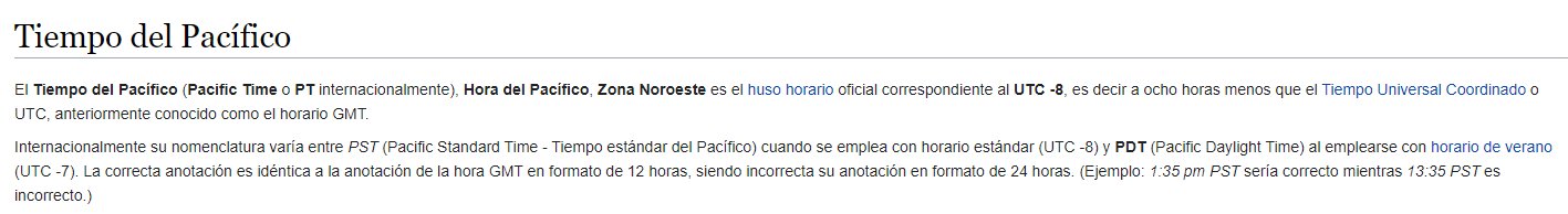 Como podemos ver en la imagen, se encuentra en «Pacific Standard time» el cual corresponde con UTC-8