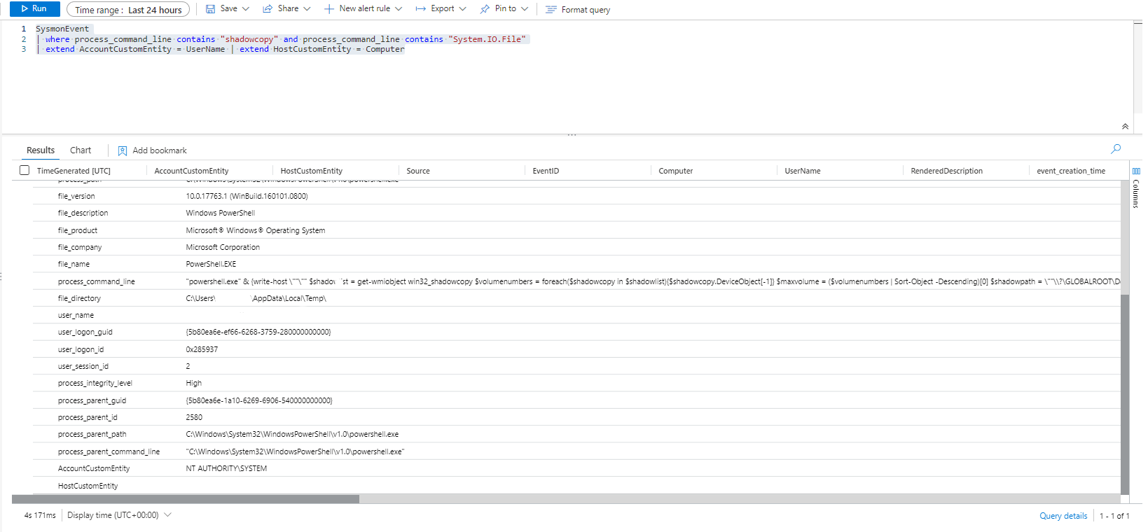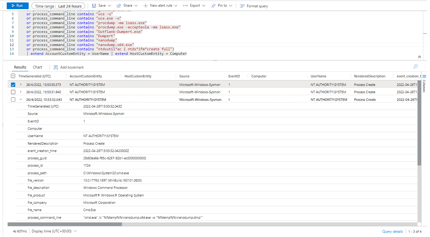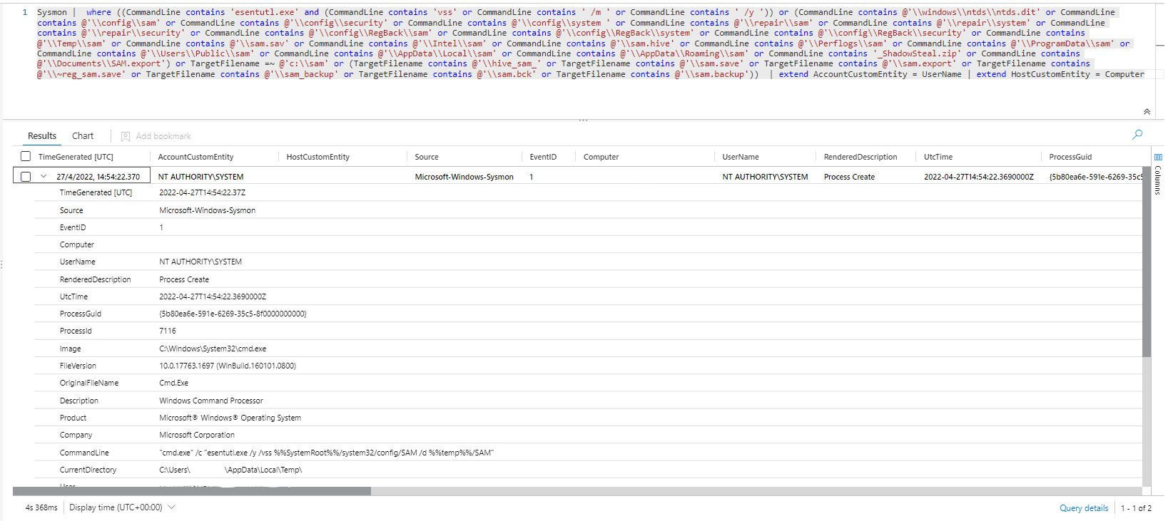 | extend RuleName = EventDetail.[0].["#text"], UtcTime = EventDetail.[1].["#text"], ProcessGuid = EventDetail.[2].["#text"], ProcessId = EventDetail.[3].["#text"], Image = EventDetail.[4].["#text"],
