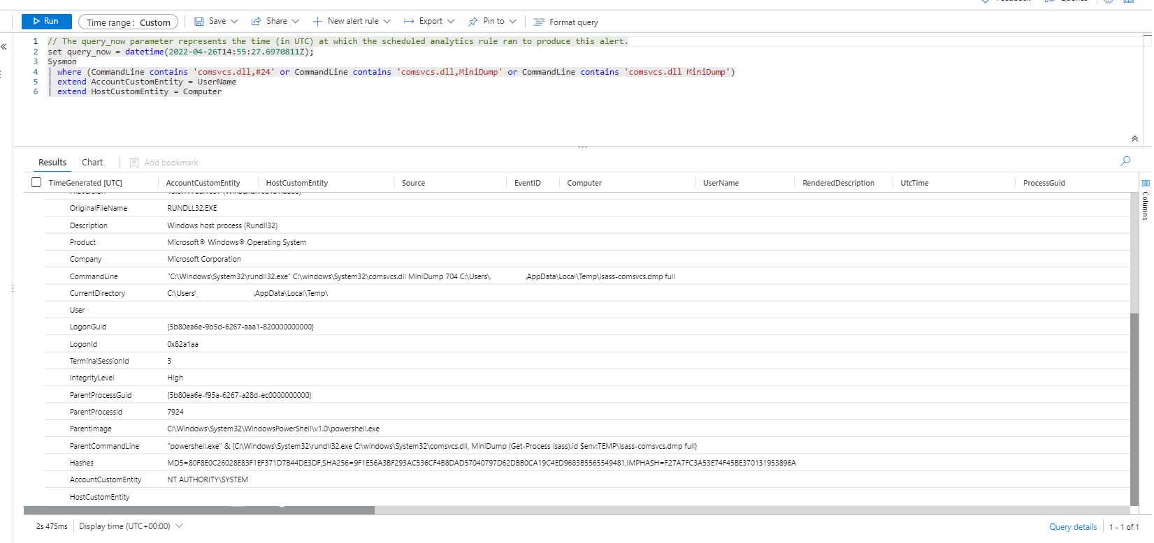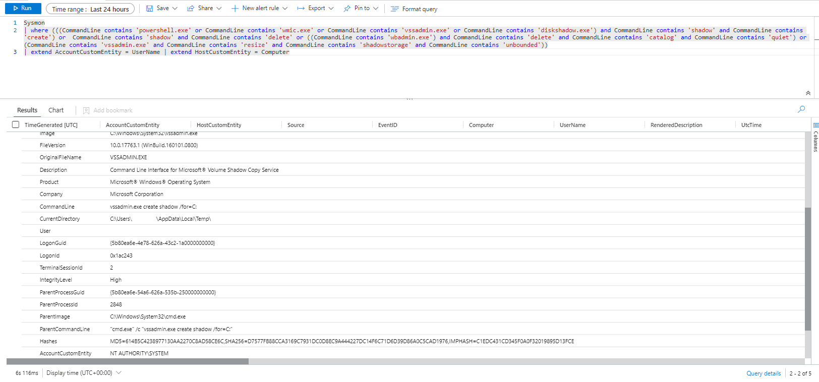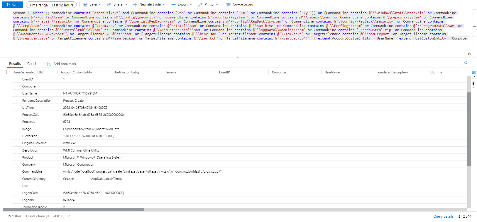 | extend RuleName = EventDetail.[0].["#text"], UtcTime = EventDetail.[1].["#text"], ProcessGuid = EventDetail.[2].["#text"], ProcessId = EventDetail.[3].["#text"], Image = EventDetail.[4].["#text"],