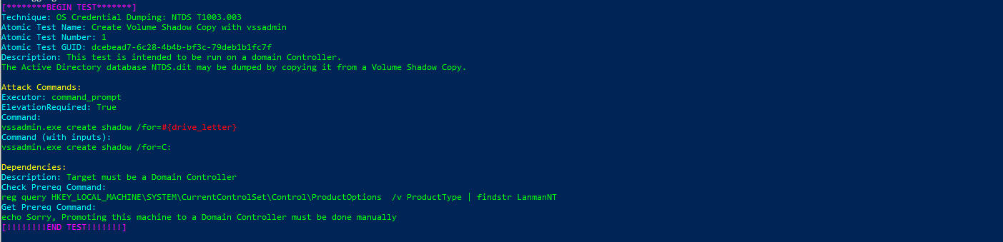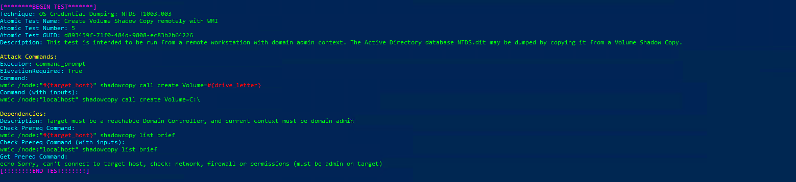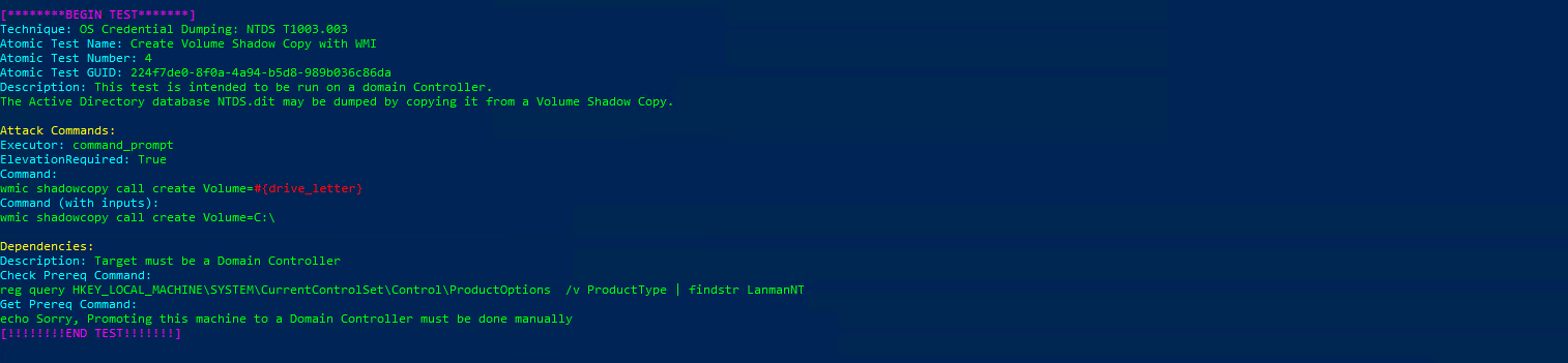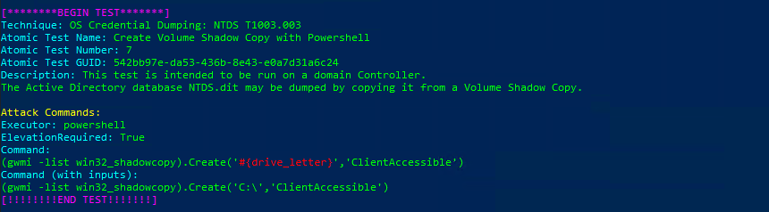 Description: This test is intended to be run on a domain Controller. The Active Directory database NTDS.dit may be dumped by copying it from a Volume Shadow Copy.