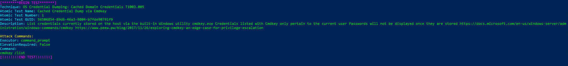 Atomic Test Name: Cached Credential Dump via Cmdkey