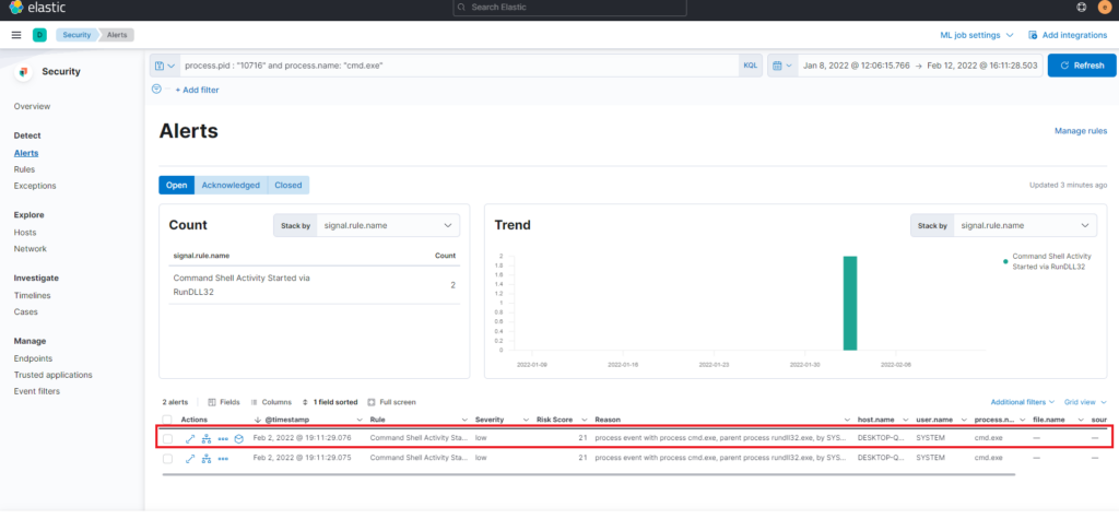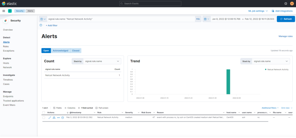 Security > Alerts y filtramos por la regla «Netcat Network Activity»