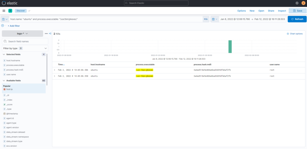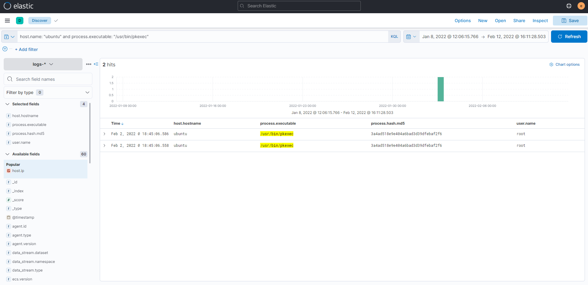 host.name: "ubuntu" and process.executable: "/usr/bin/pkexec"