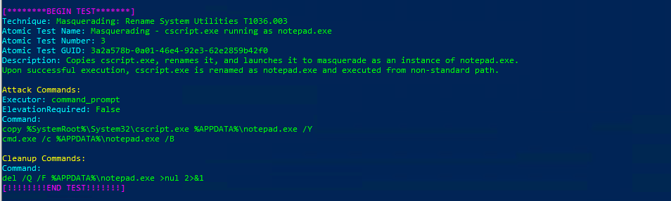 Atomic Test Name: Masquerading – cscript.exe running as notepad.exe